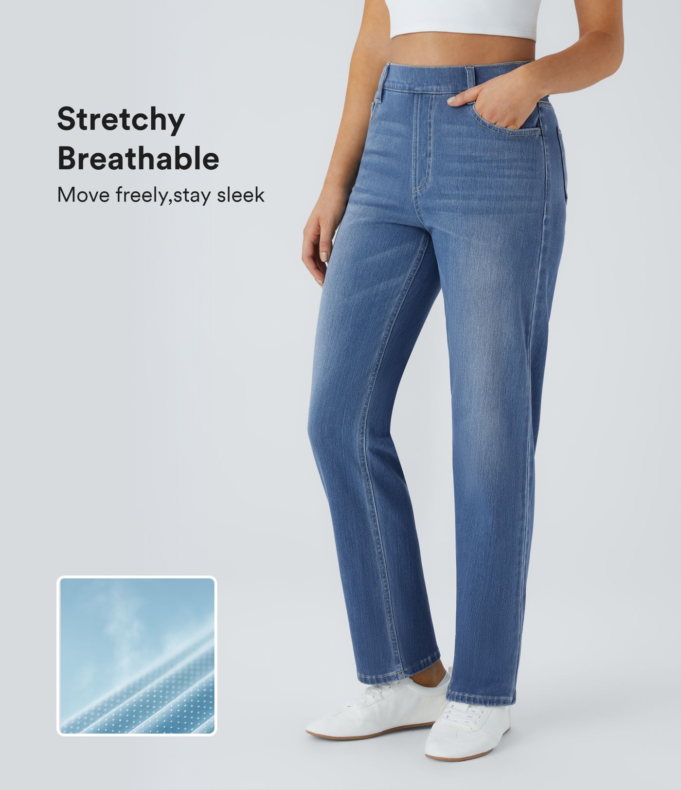 Halara Flex™ High Waisted Pockets Straight Leg Washed Casual Jeans