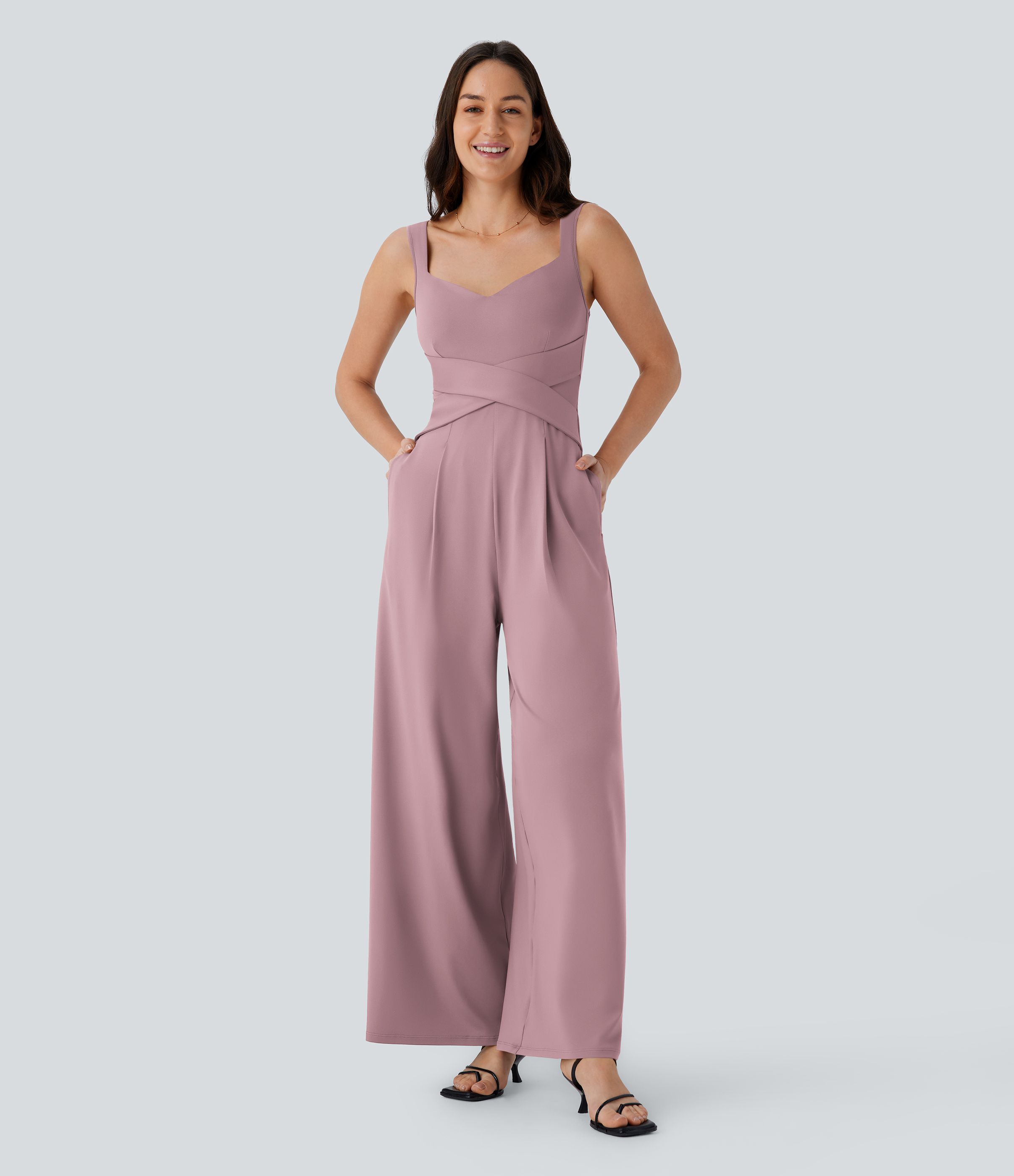 U Back Sleeveless Casual Jumpsuit with Pockets