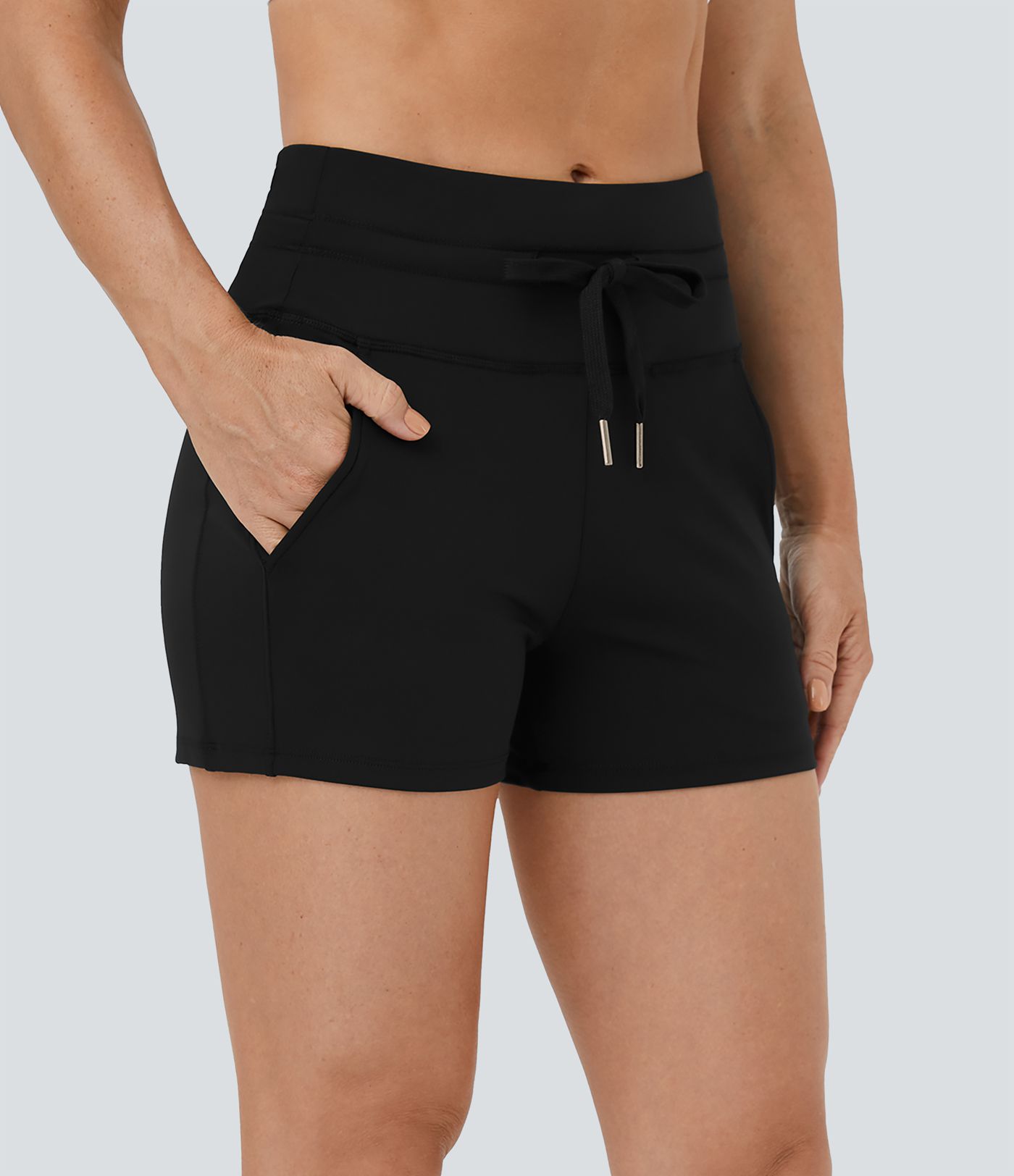 Softlyzero™ Airy Shorts mit hoher Taille, Kordelzug und seitlichen Taschen, einfarbig, 7,6 cm