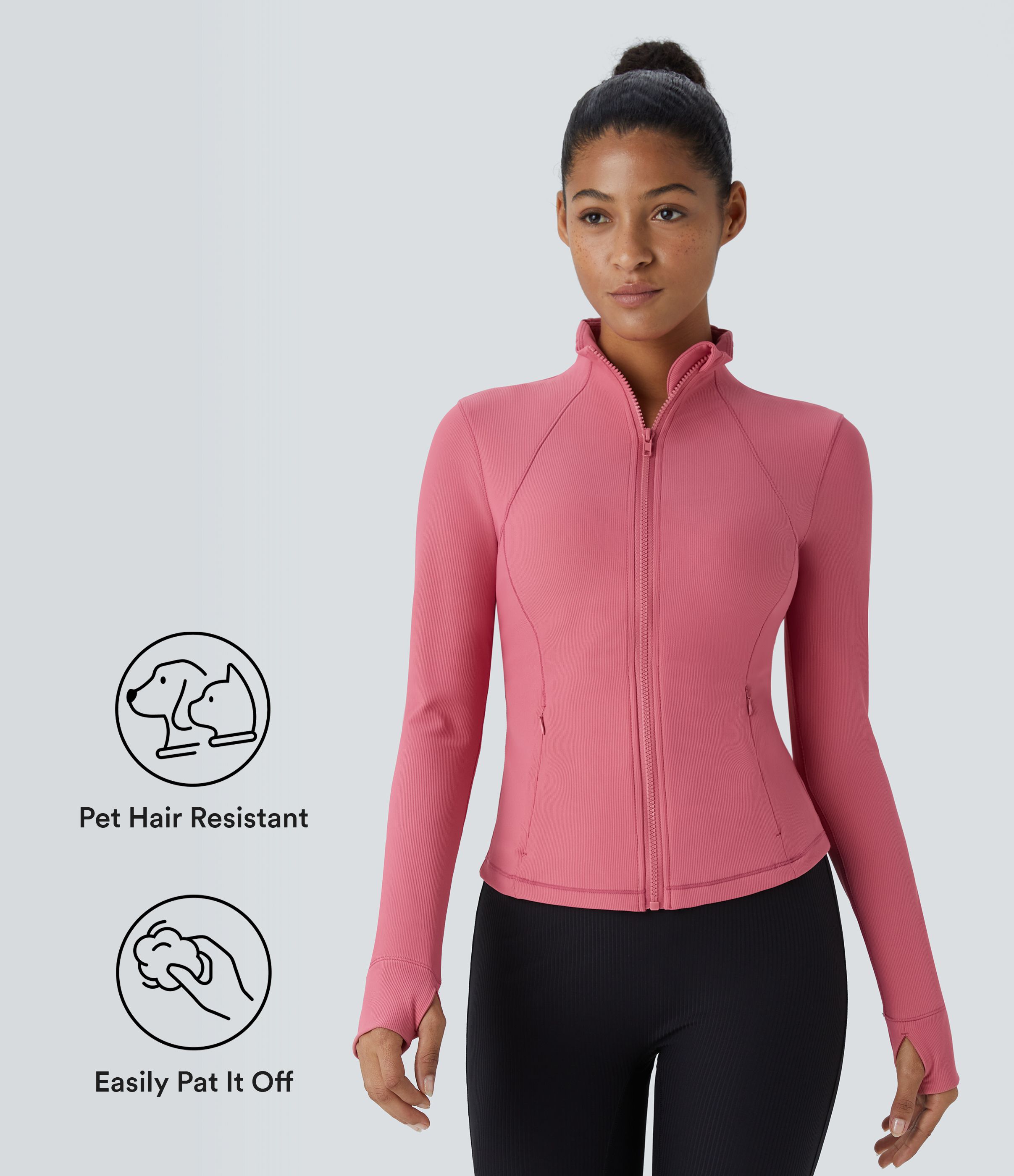 Patitoff™ Flow Pet Hair Resistant Stand Collar Zipper Pocket Thumb Hole Cropped Casual Jacket