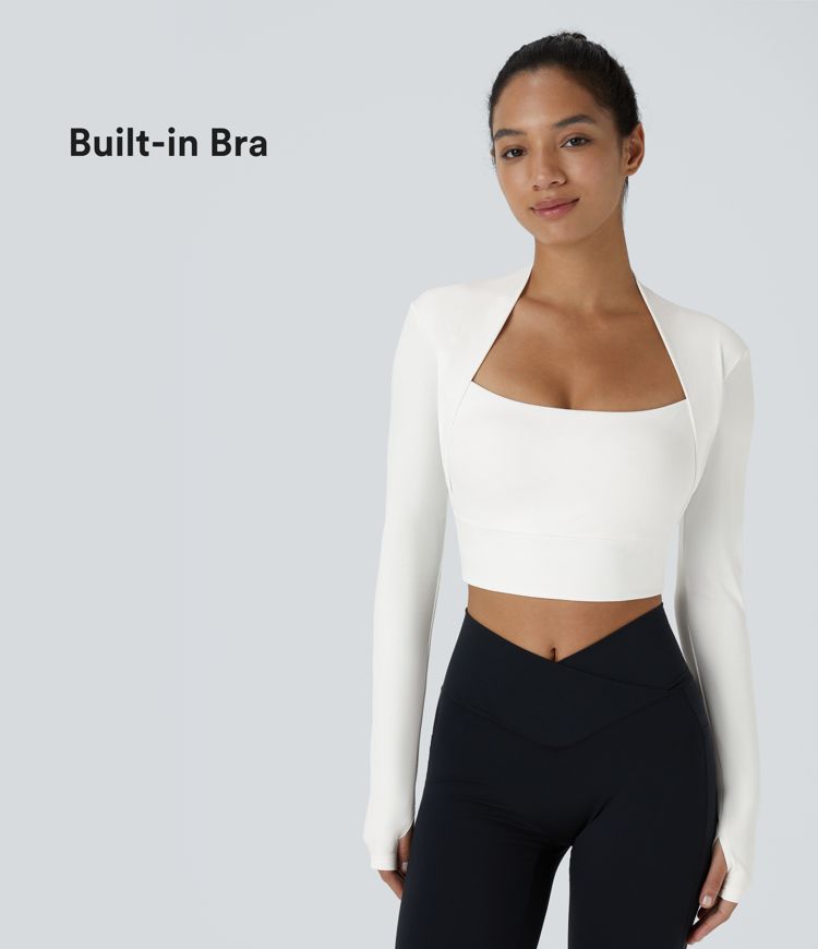 SoftlyZero™ Plush Long Sleeve Thumb Hole 2-in-1 Cropped Yoga Sports Top