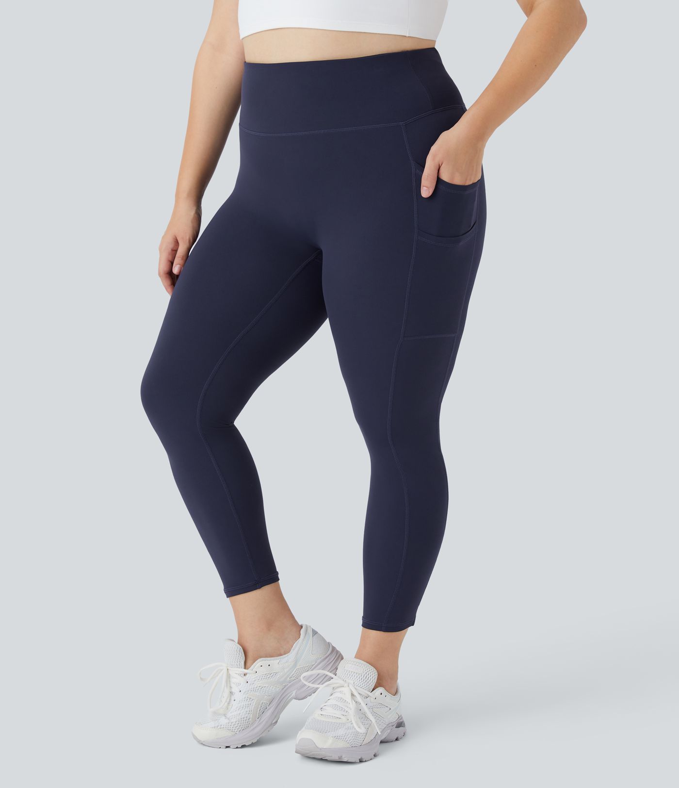 SoftlyZero™ High Waisted Double Pockets Plus Size Plain Yoga 7/8 Leggings-UPF50+