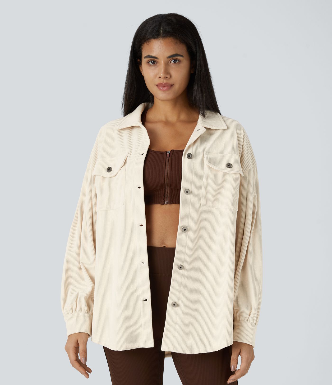 Pocket Long sleeve Curved Hem Corduroy Casual Jacket