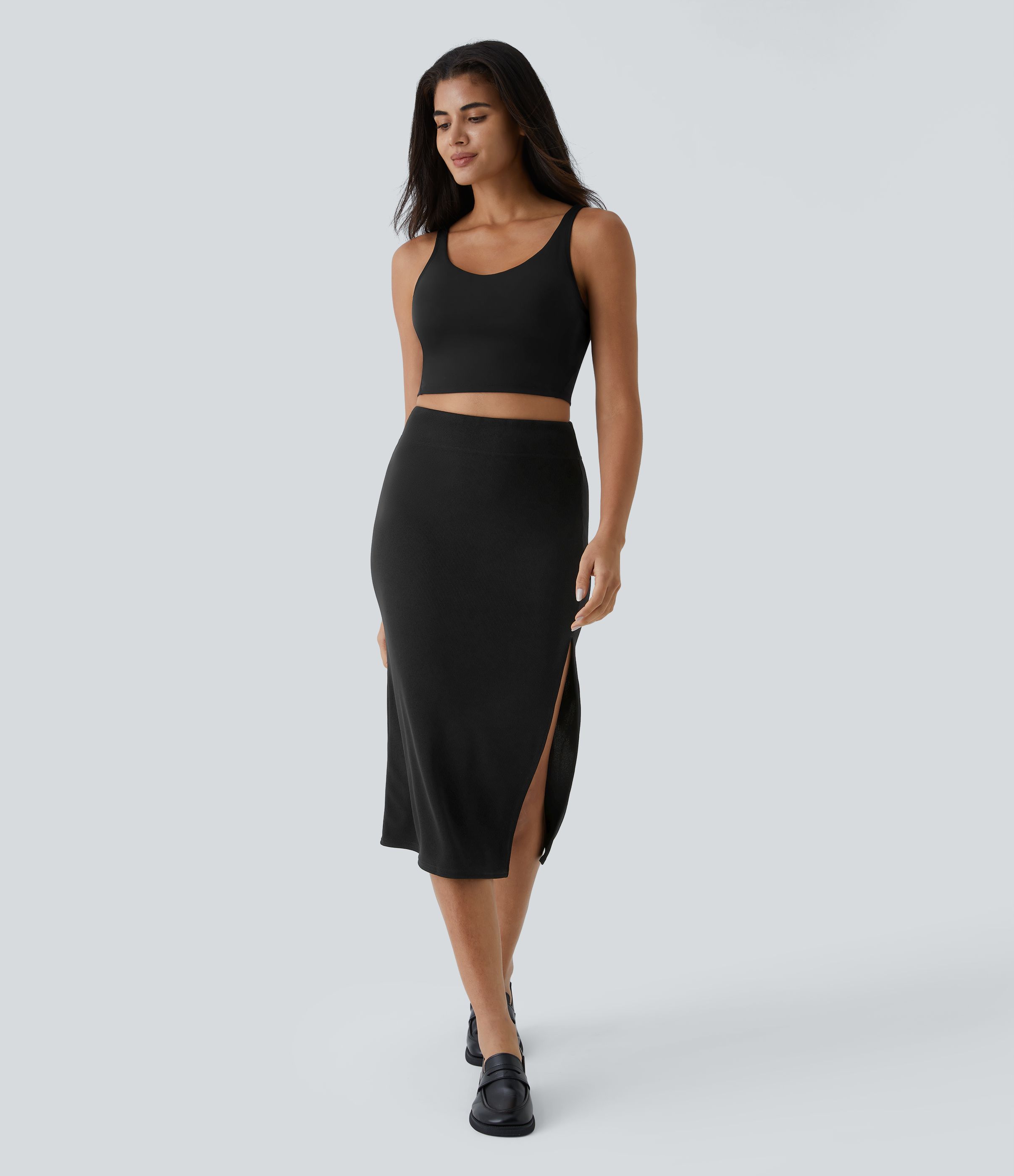 Ribbed High Waisted Bodycon Midi Casual Skirt