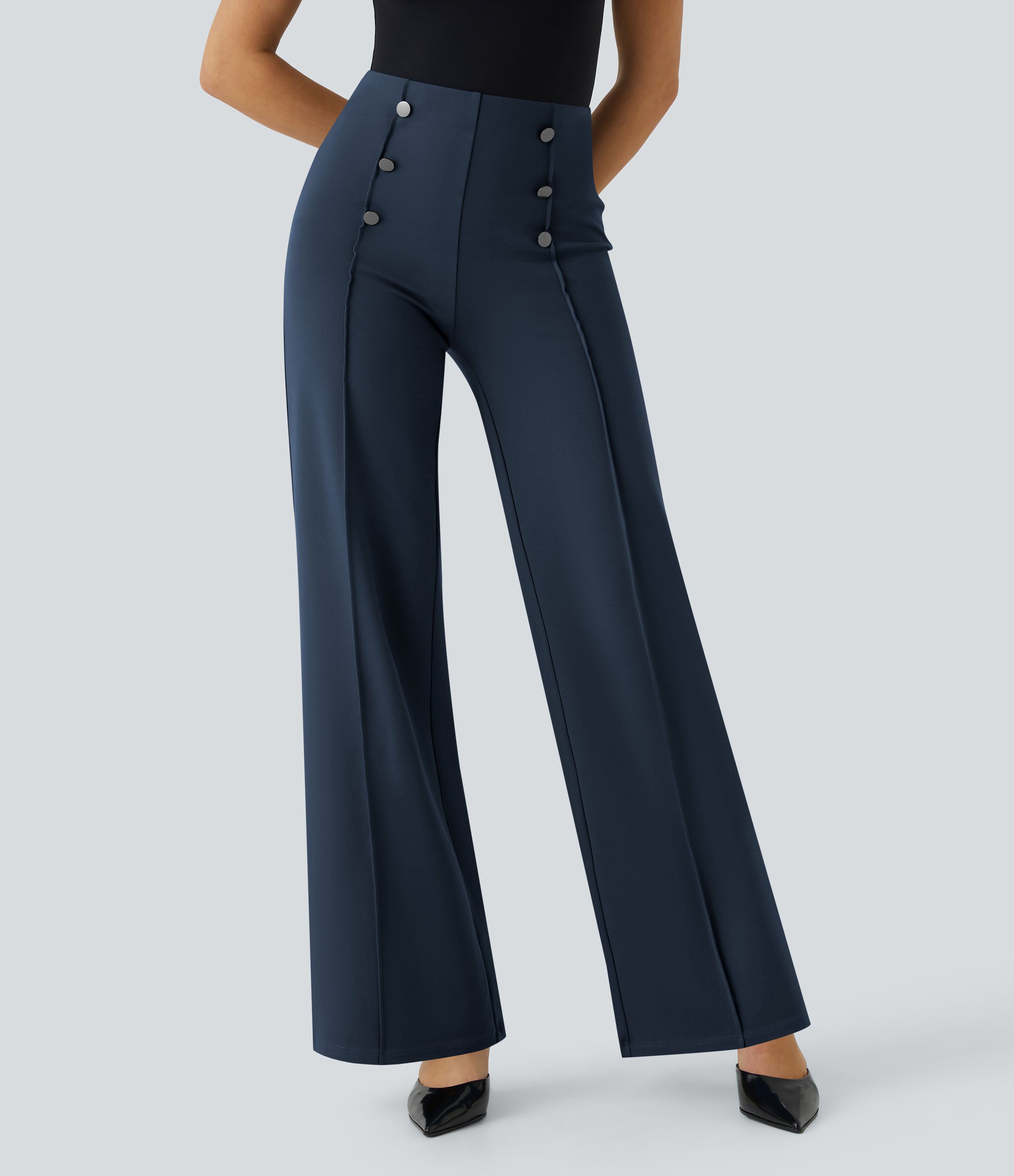 High Waisted Pocket Wide Leg Work Pants