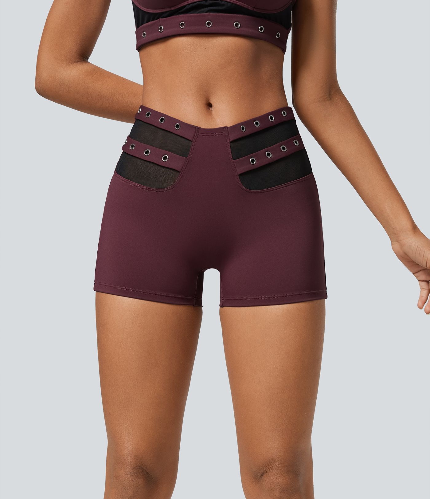 SoftlyZero™ Airy Mid Rise V Shaped Contrast Mesh Cool Touch Casual Biker Shorts 3''-UPF50+