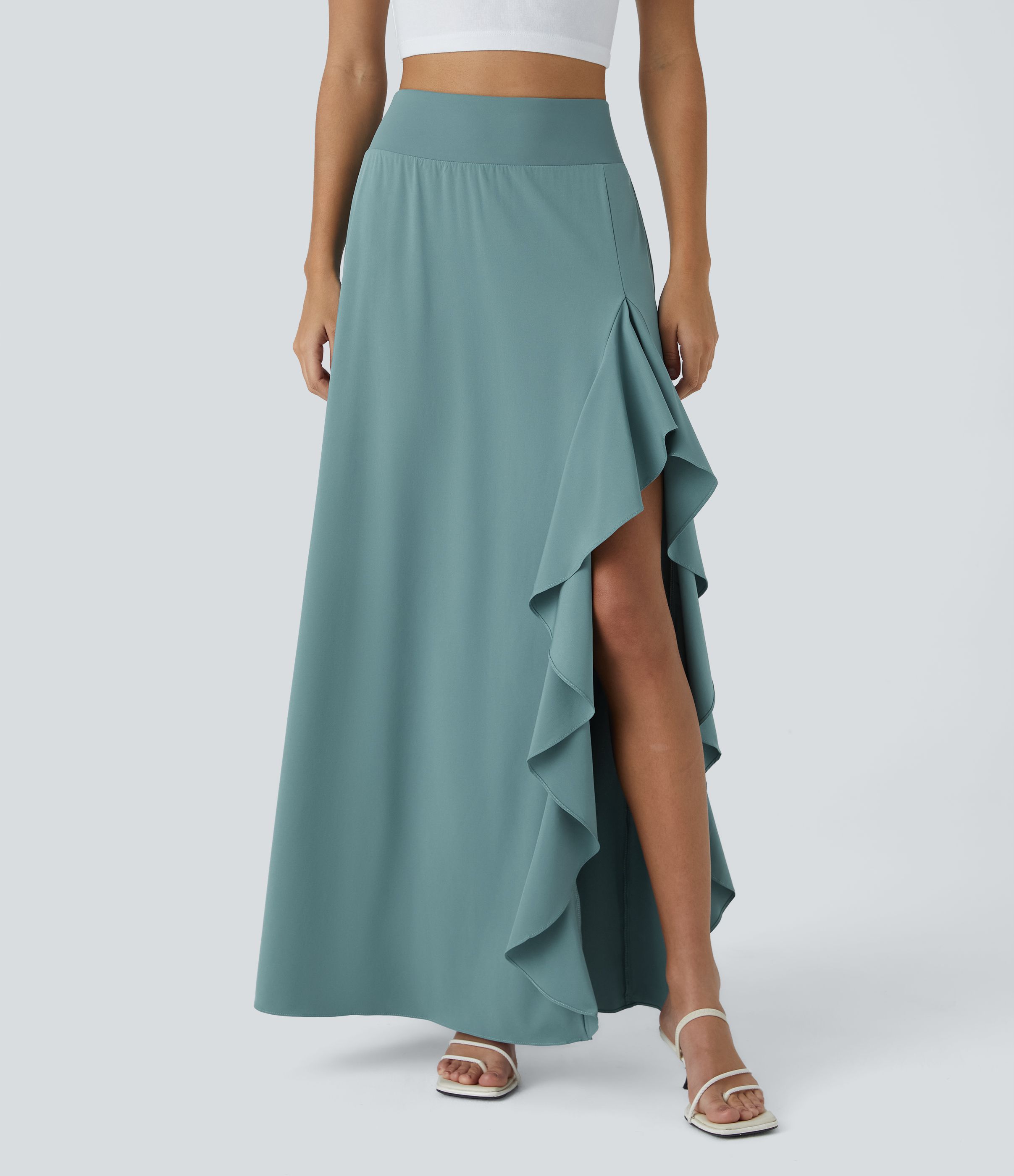 Breezeful™ High Waisted Asymmetric Ruffle Trim Hem 2-in-1 Maxi Quick Dry Casual Skirt
