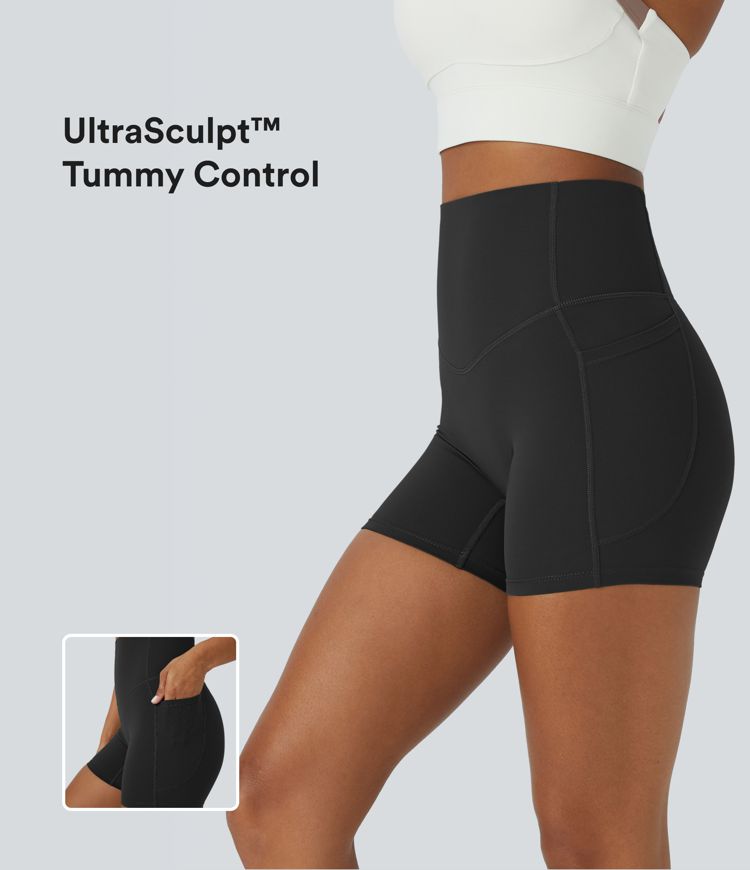 Halara UltraSculpt™ SoCinched Pantalones cortos de ciclismo de cintura alta con control de abdomen, bolsillos laterales y entrenamiento 5''