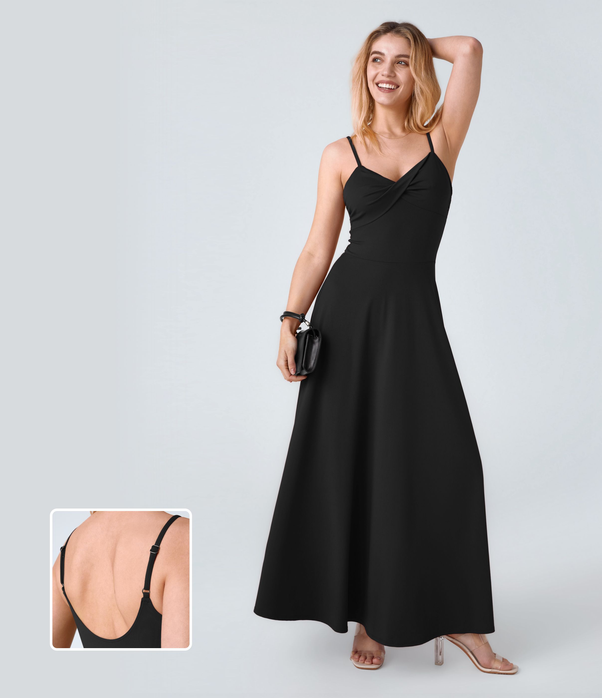 U Back Flare Flowy Maxi Slip Dress
