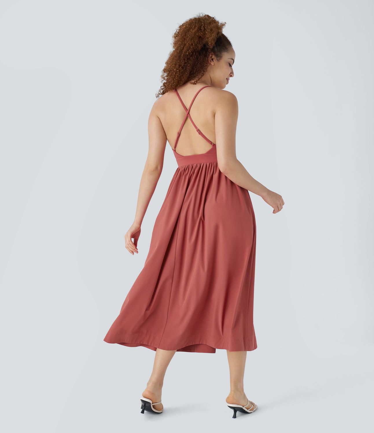 Breezeful™ Ruched Pocket Flare Midi Slip Quick Dry Dress