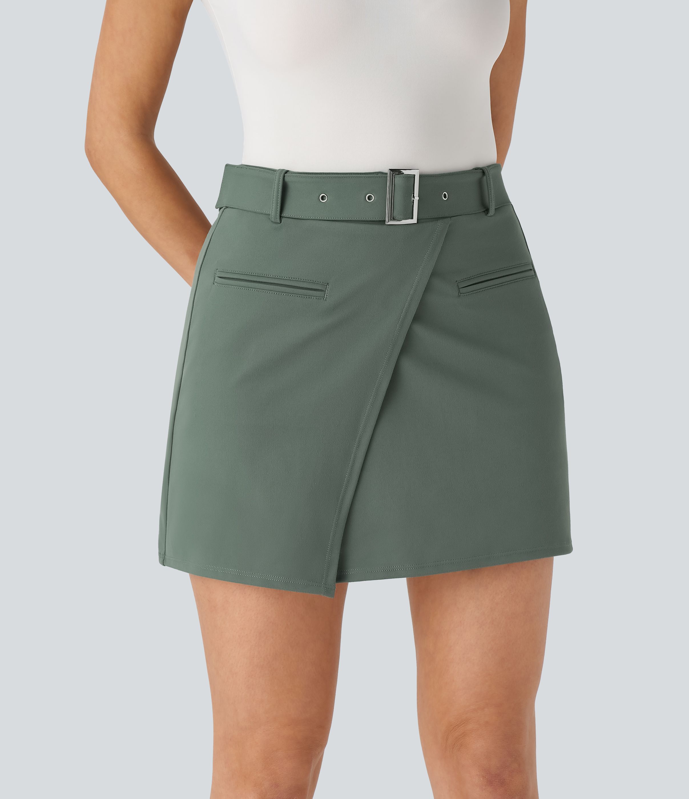 DayStretch High Waisted Belted Pocket 2-in-1 Mini Work Skirt