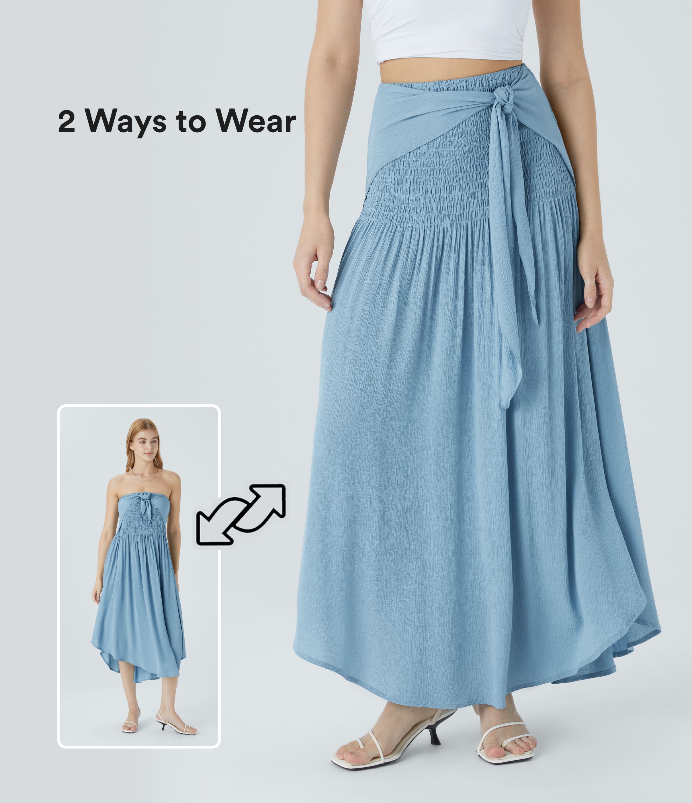 High Waisted Shirred Tie Front Maxi Skirt