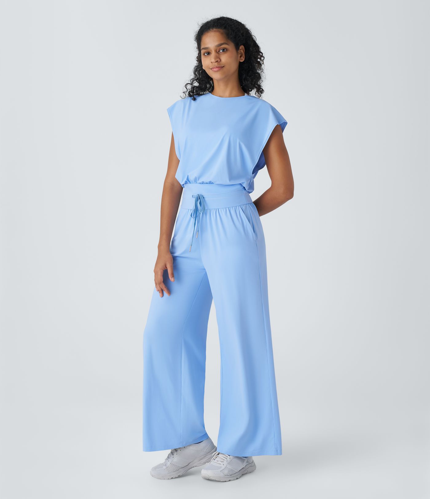 G-Hook Cut Out Drawstring Pocket Cool Touch Hiking Jumpsuit-UPF50+