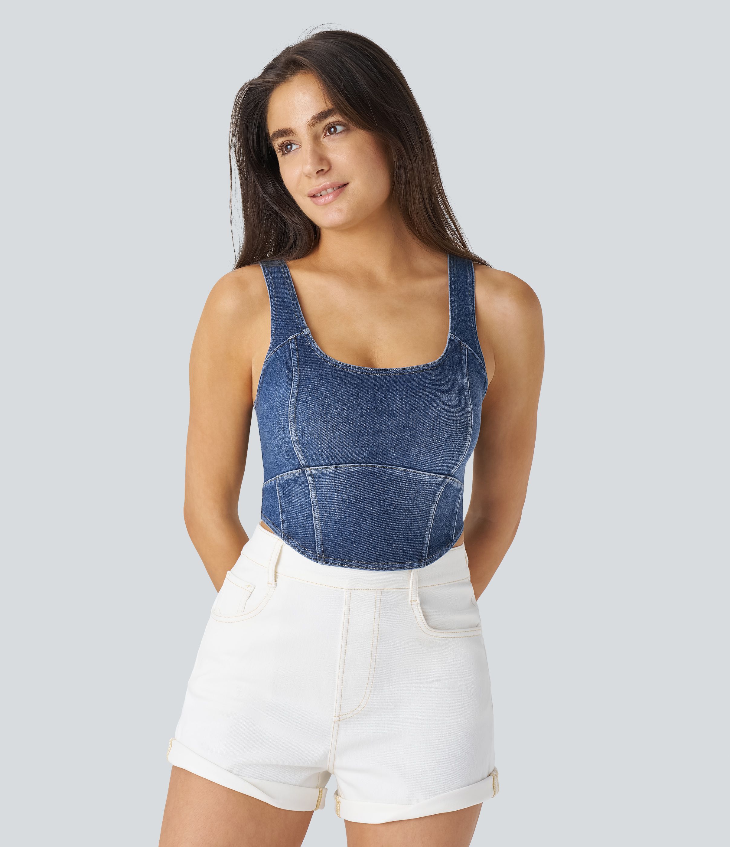 Halara Flex™ U Neck Corset Curved Hem Denim Cropped Casual Tank Top