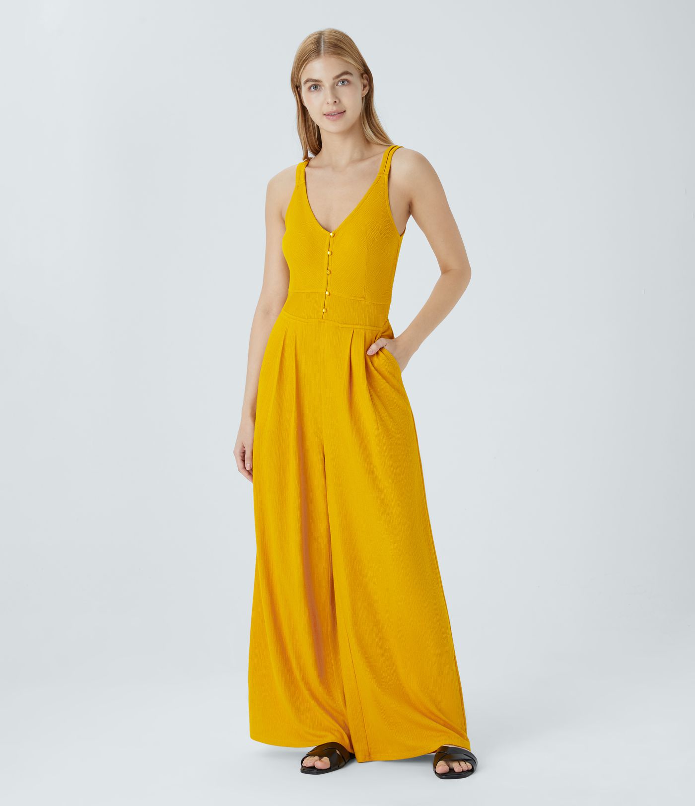 Double Straps V Neck Pocket Wide Leg Casual Jumpsuit