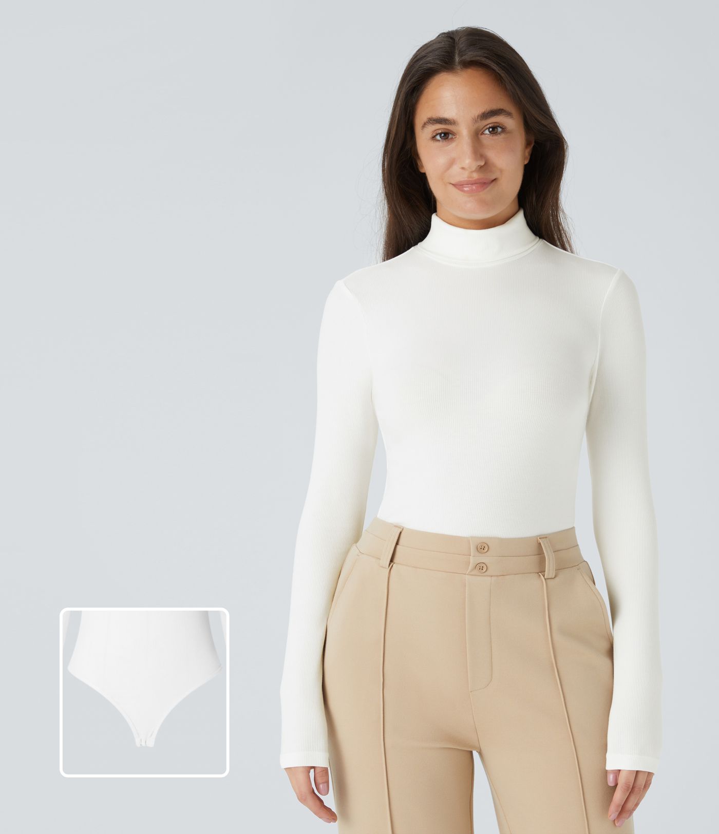 Ribbed Knit High Neck Long Sleeve Work Bodysuit
