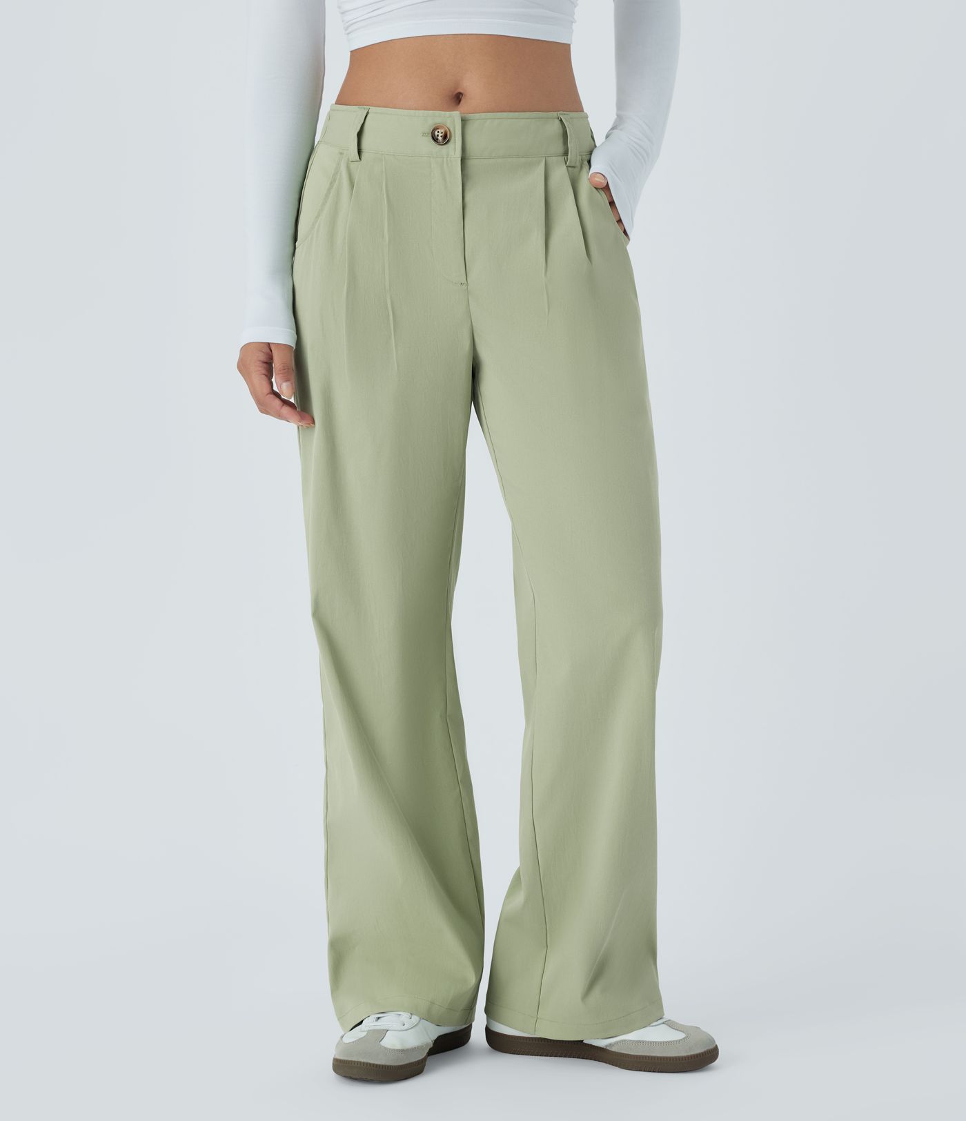 Mid Rise Zipper Pocket Straight Leg Casual Pants