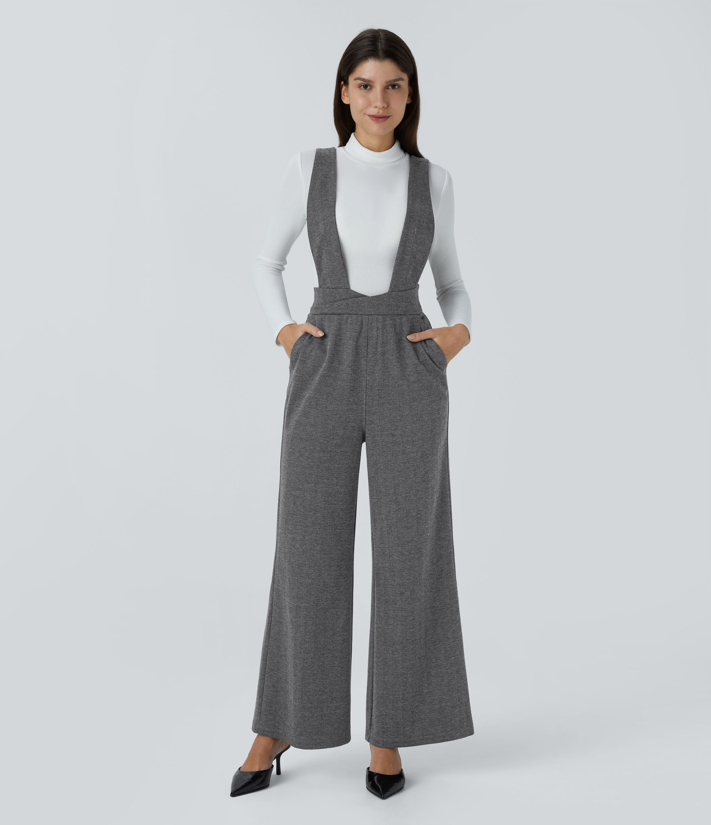 Wide Strap Decorative Pocket Herringbone Work Overalls