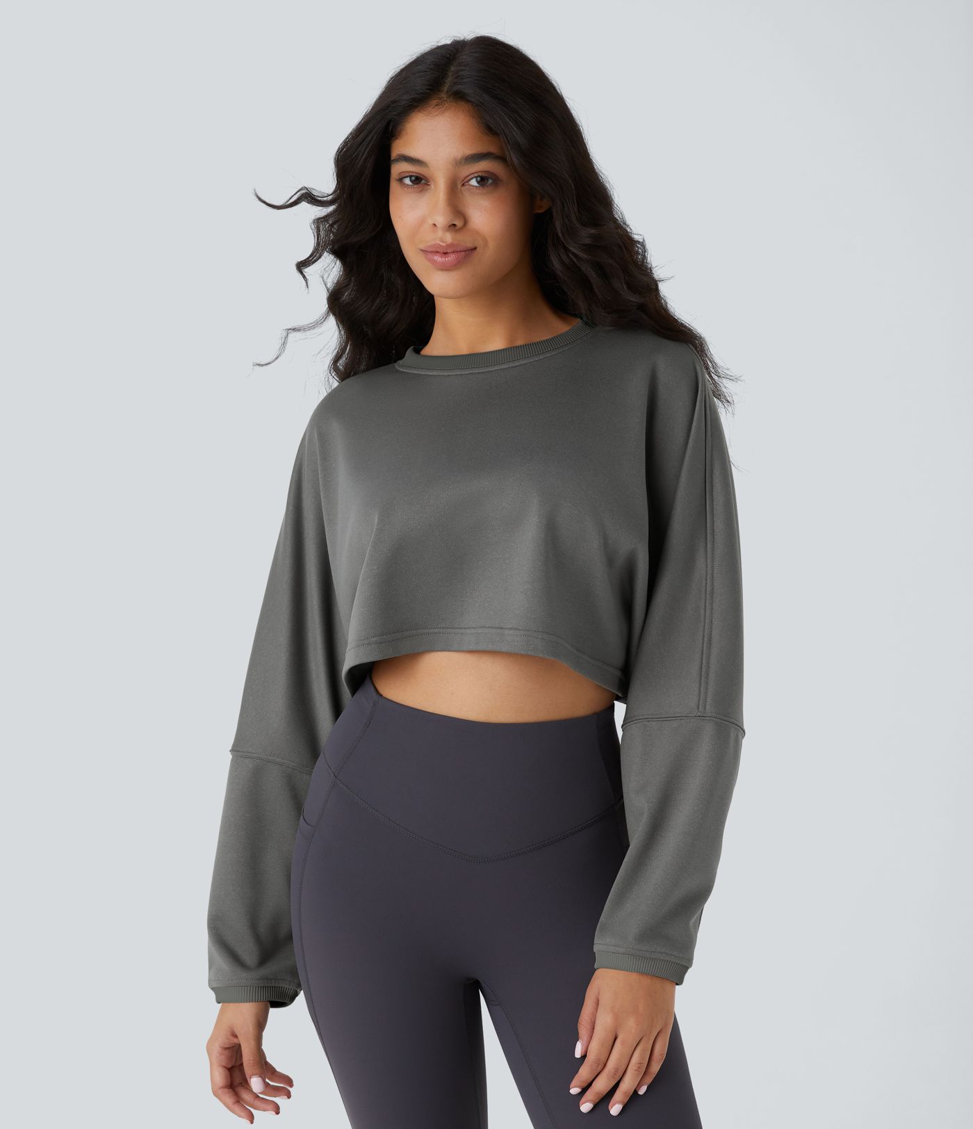 Round Neck Batwing Sleeve Cropped Relaxed Casual Sweatshirt