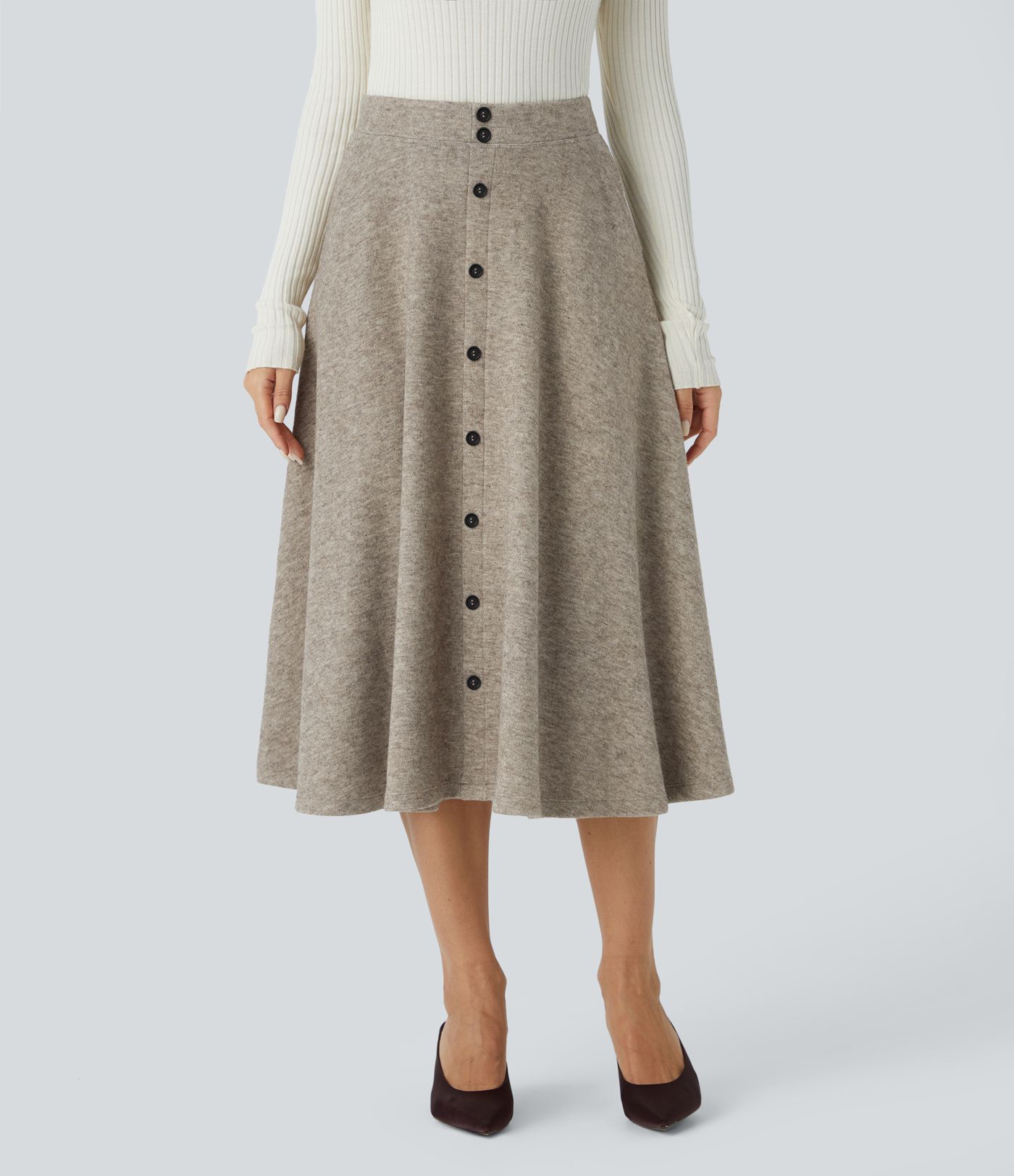 High Waisted Decorative Pocket Midi Flare Casual Skirt
