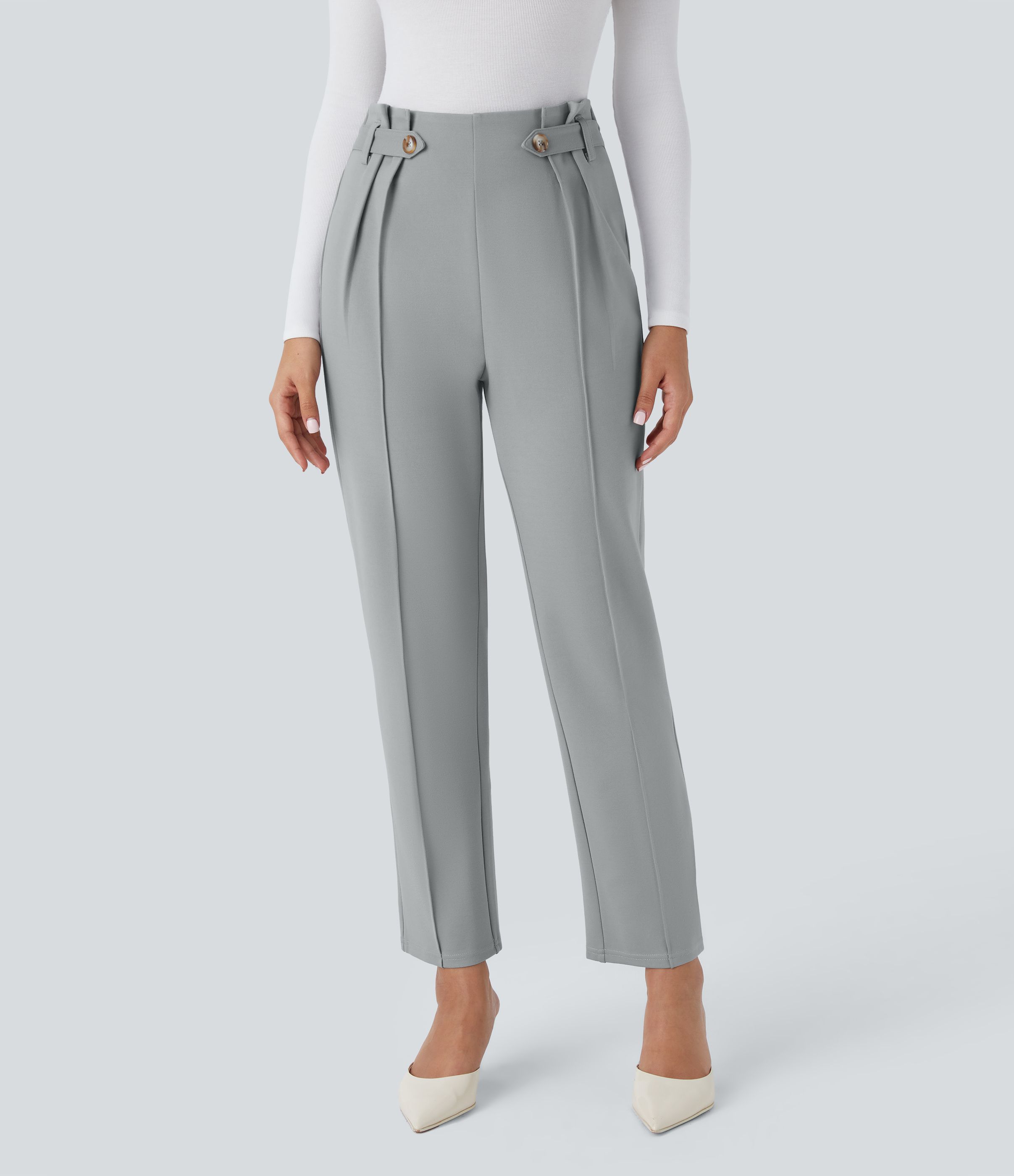 High Waisted Decorative Ankle Length Work Tapered Pants
