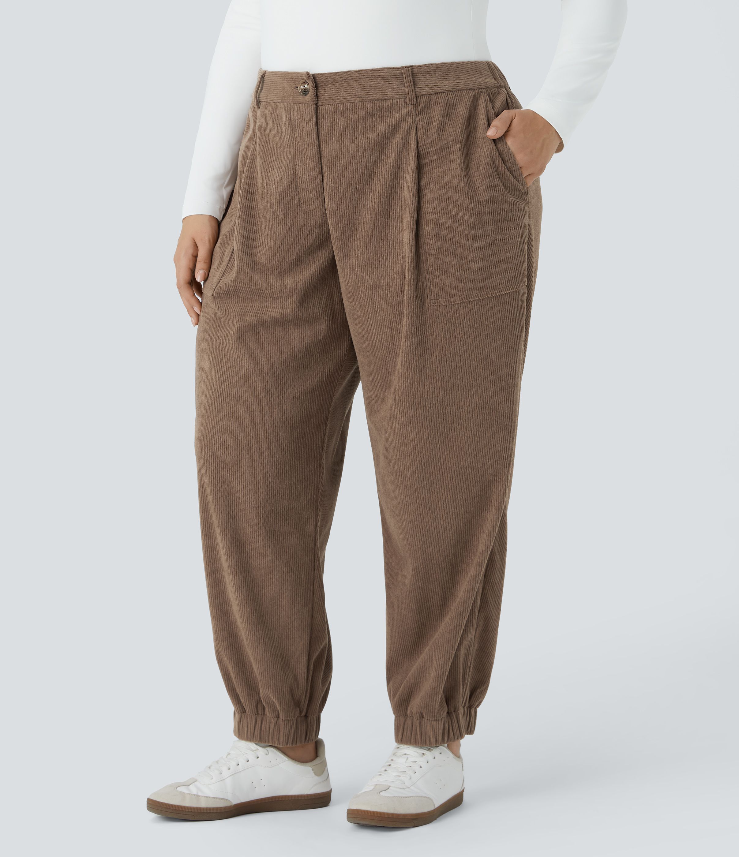 Mid Rise Zipper Pockets Corduroy Casual Plus Size Joggers