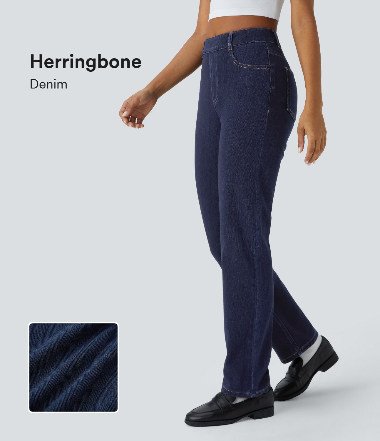 Halara Flex™ High Waisted Multiple Pockets Straight Leg Herringbone Stretchy Knit Casual Jeans