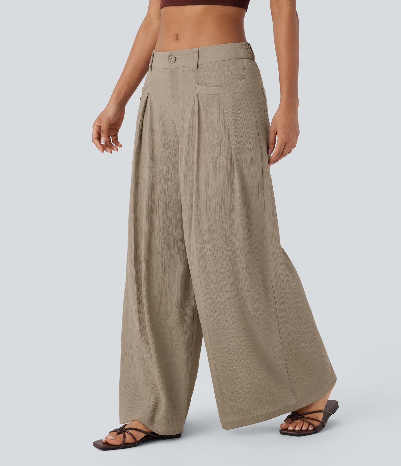 Low Rise Zipper Pockets Wide Leg 2-in-1 Pants