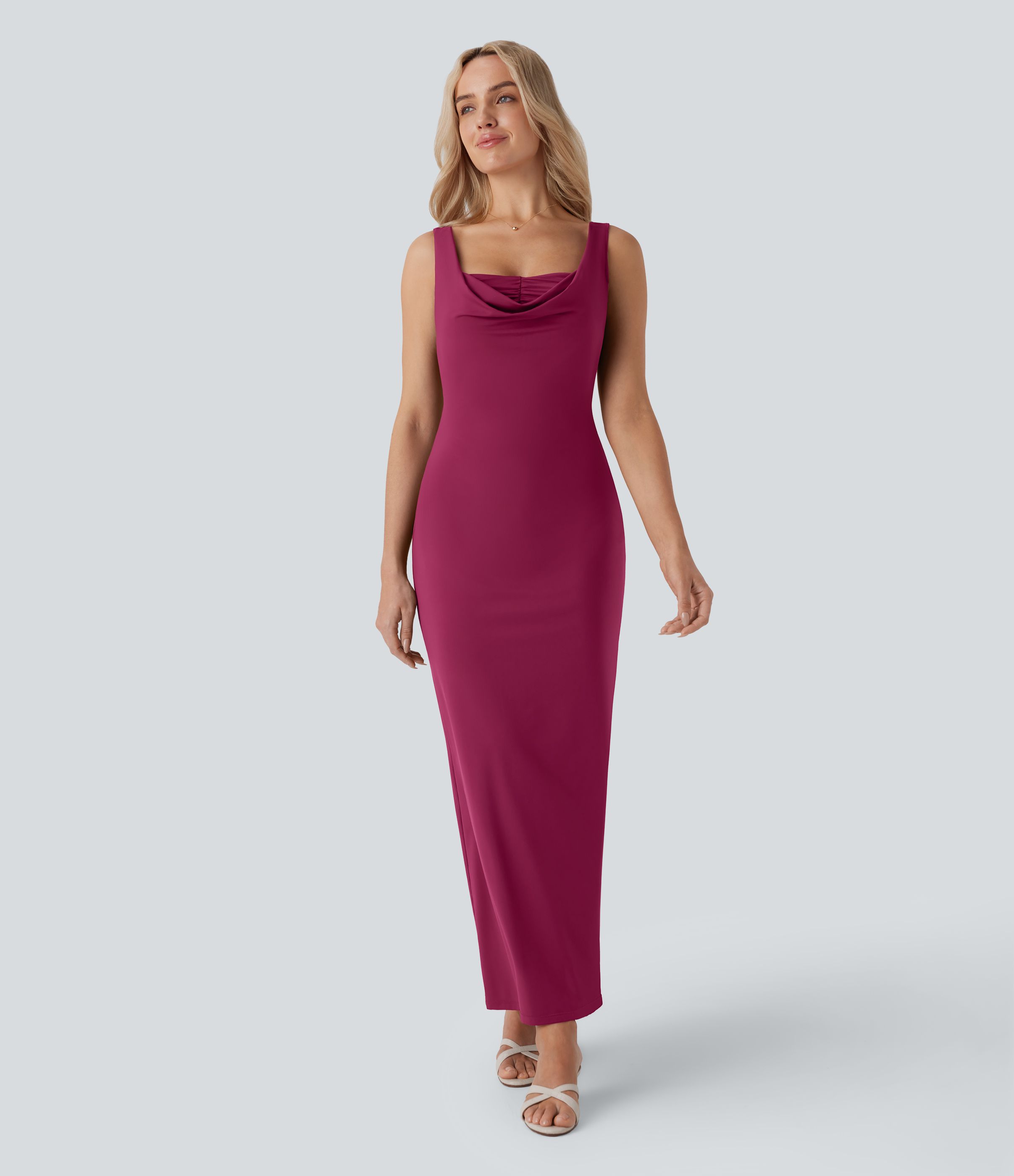 Cowl Neck Sleeveless Ruched Slim Maxi Dress