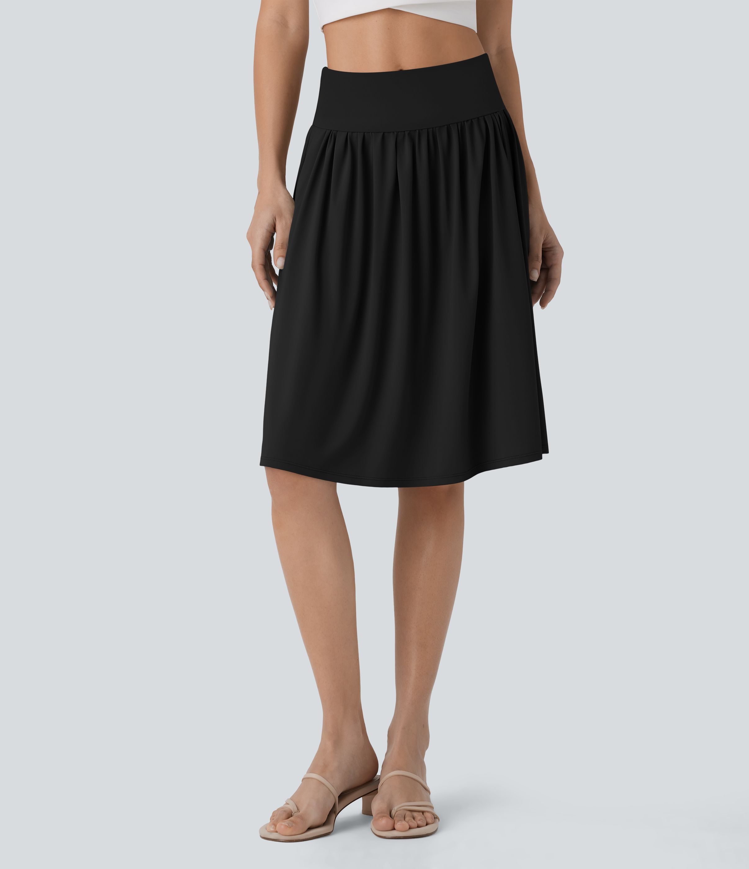 Umschlag-Midirock mit mittlerer Bundhöhe und Taschen-Tellerrock-Schnitt