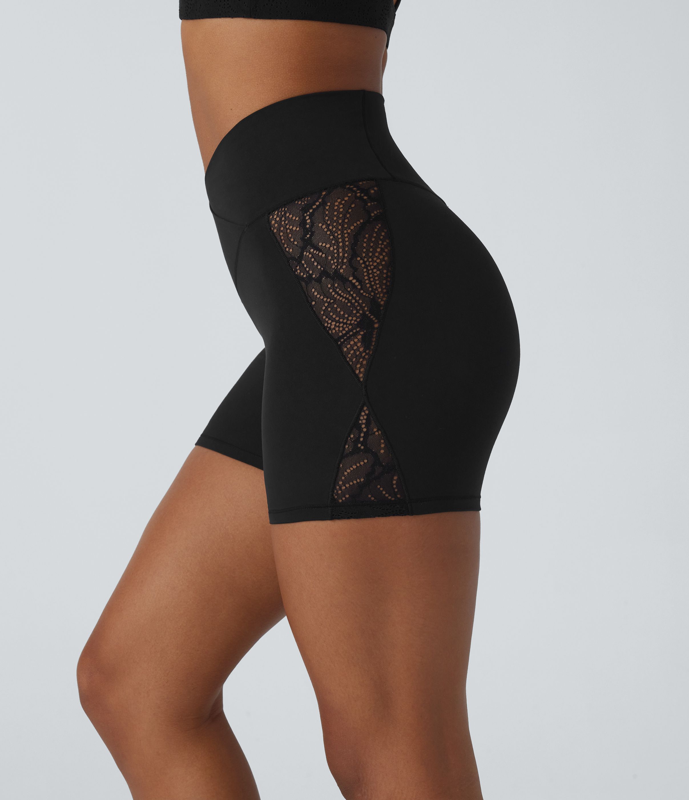 SoftlyZero™ High Waisted Crossover Contrast Lace Pocket Yoga Biker Shorts 5''-UPF50+