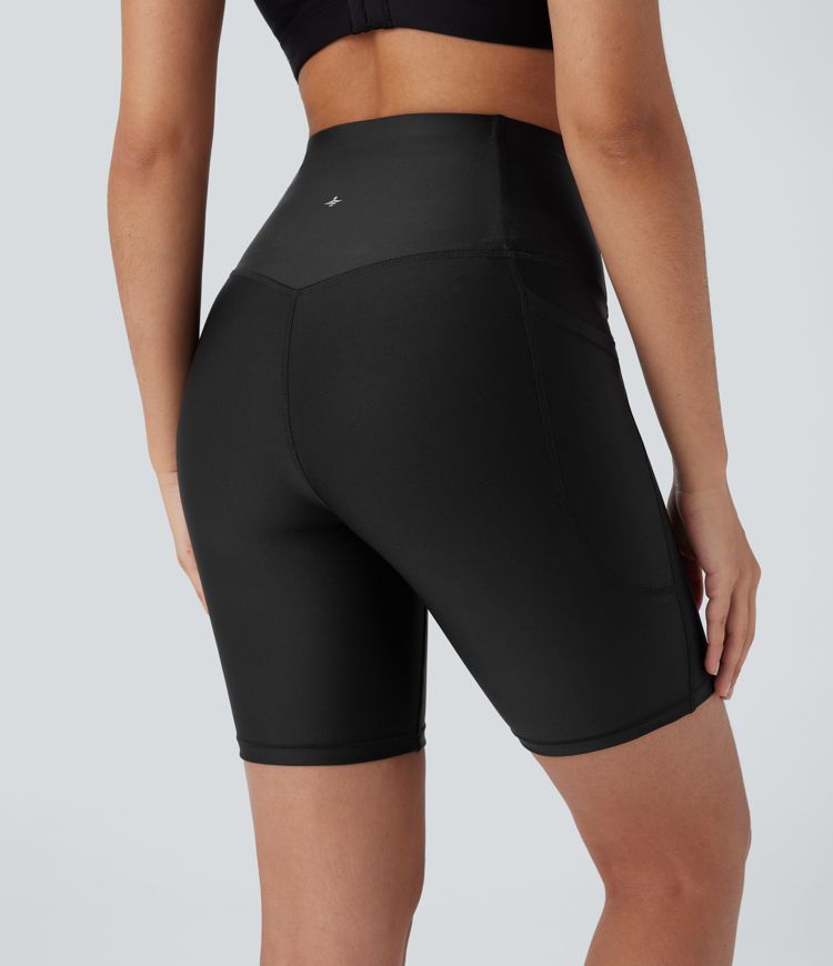 High Waisted Tummy Control Pocket Sheen Training Bike Running Shorts 7''