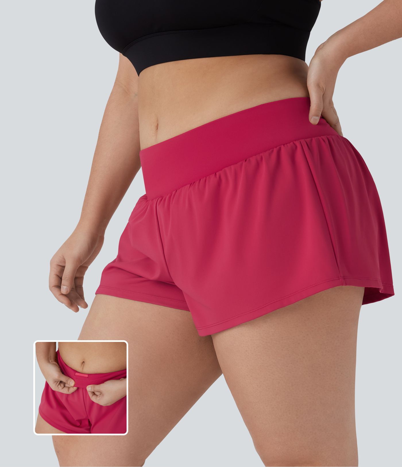 Plus Size SoftlyZero™ Airy Low Rise Inside Drawstring 2-in-1 Cool Touch Yoga Shorts with Pockets