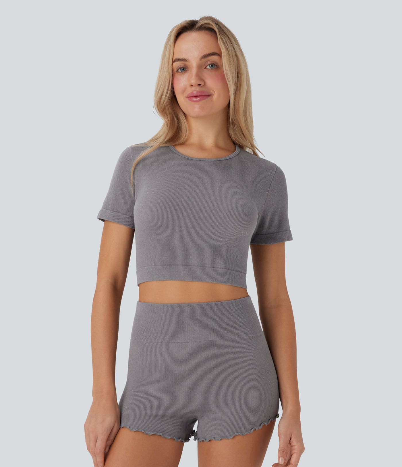 Seamless Flow Round Neck Short Sleeve Cropped Lounge Top