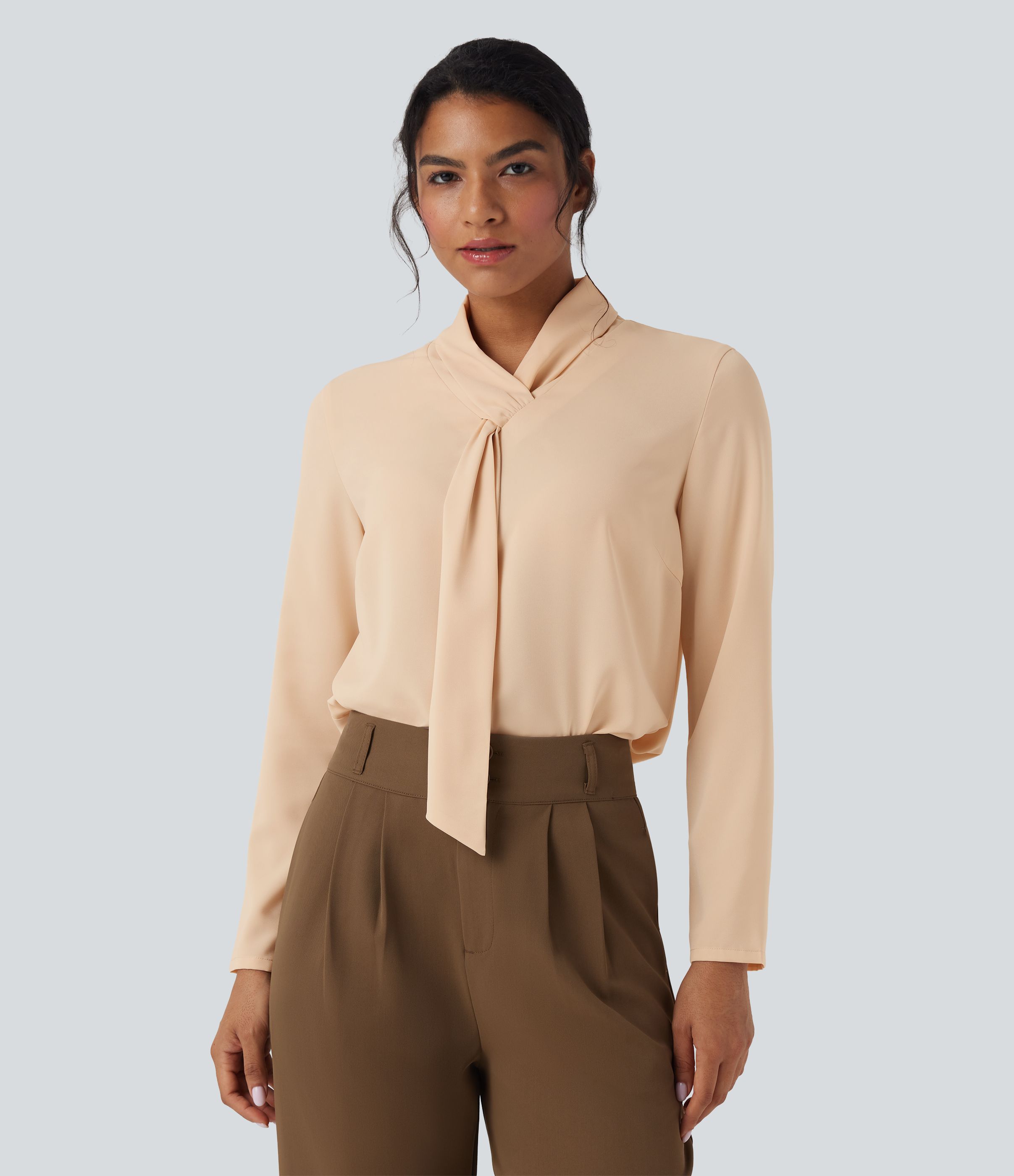 Wrinkle-resistant Scarf Neck Long Sleeve Work Shirt