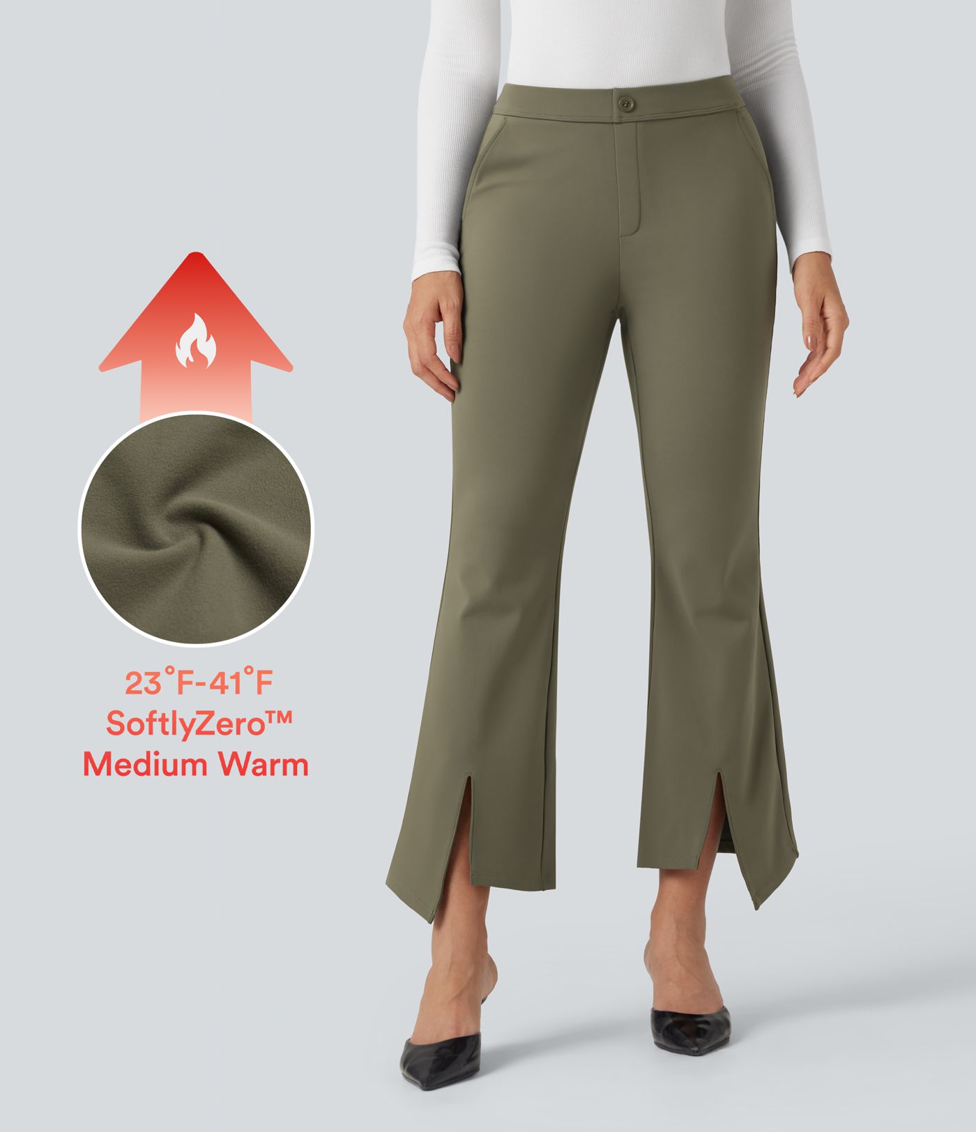 SoftlyZero™ Plush Thermal High Waisted Split 7/8 Work Bootcut Pants with Pockets