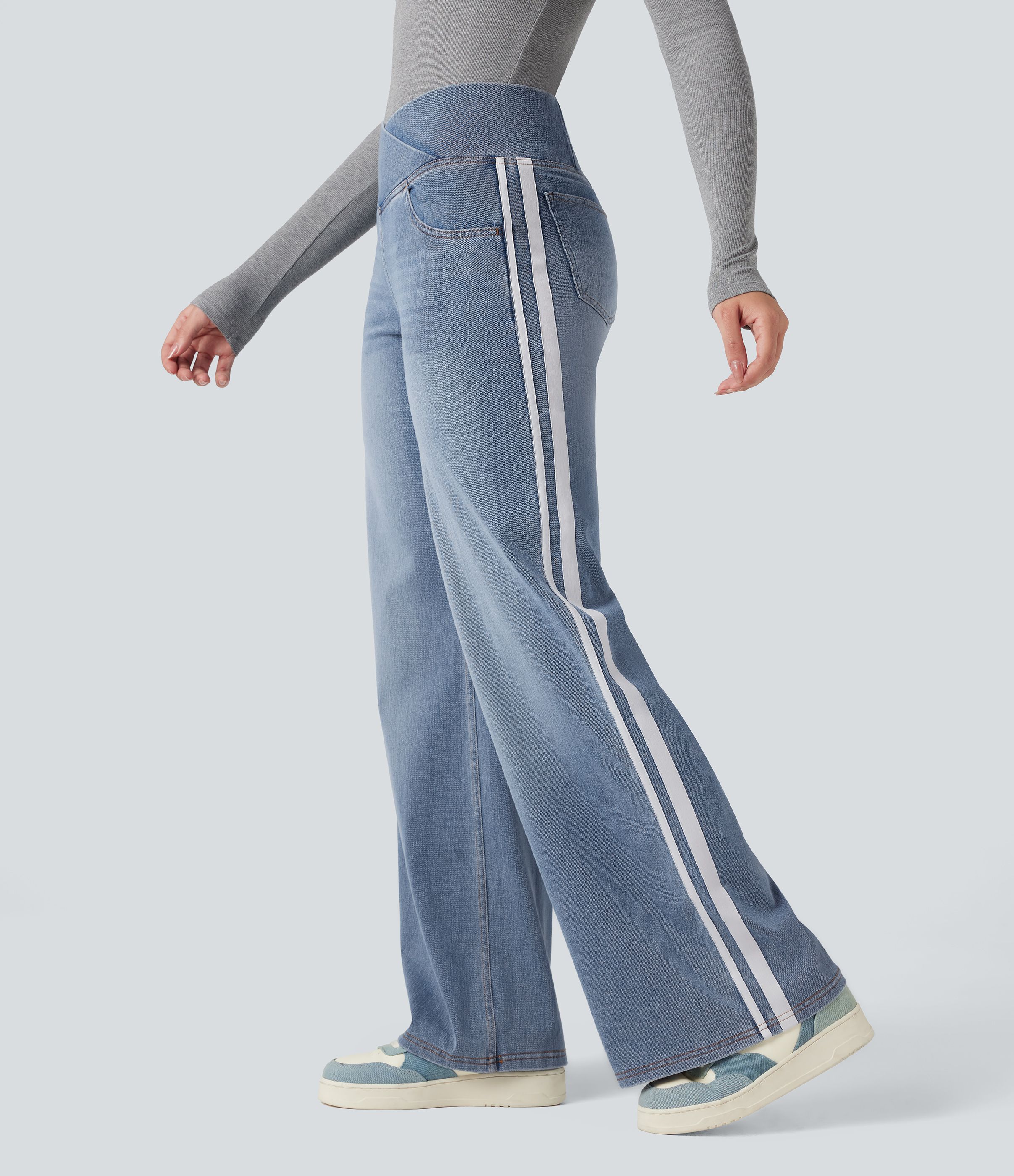 Halara Flex™ High Waisted Crossover Stripe Bootcut Casual Jeans with Pockets