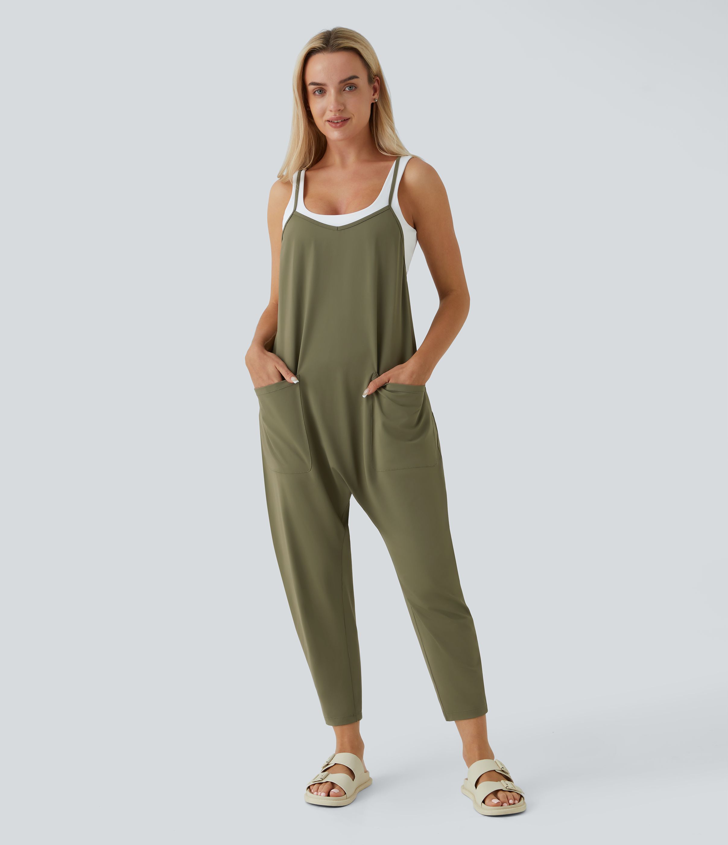 Pockets Ankle Length Casual Loose Tapered Jumpsuit