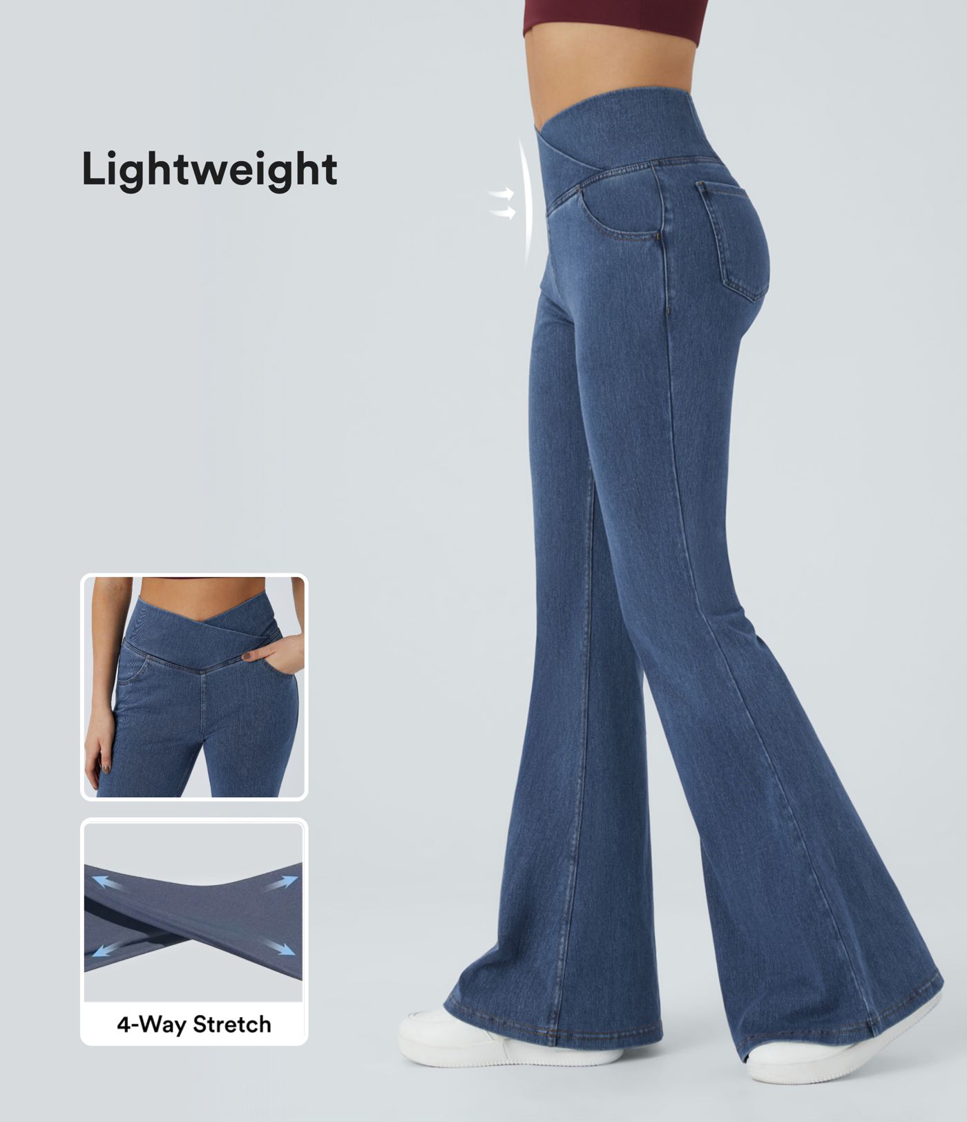 Halara Flex™ High Waisted Crossover Pocket Washed Women Casual Denim Jeans