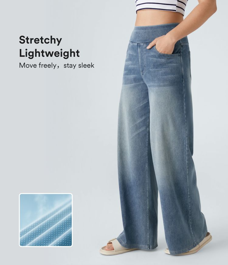 Jeans anchos de cintura alta con bolsillos Halara Flex™, lavados y casuales