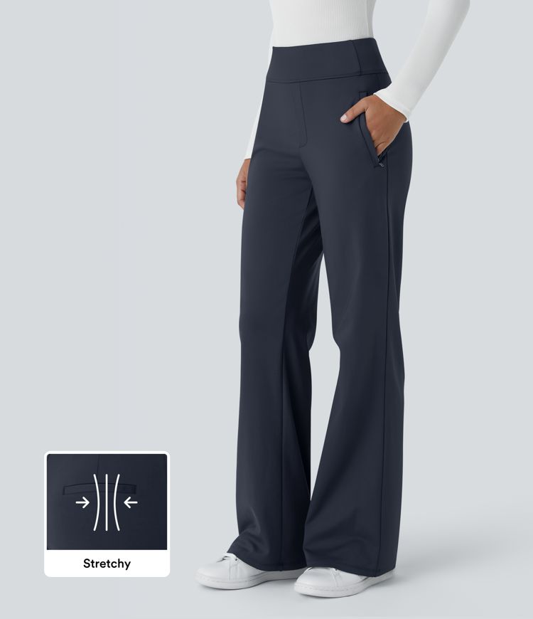Halara Flex™ Pantalones de trabajo de alto alto y pierna ancha con bolsillo lateral y cremallera