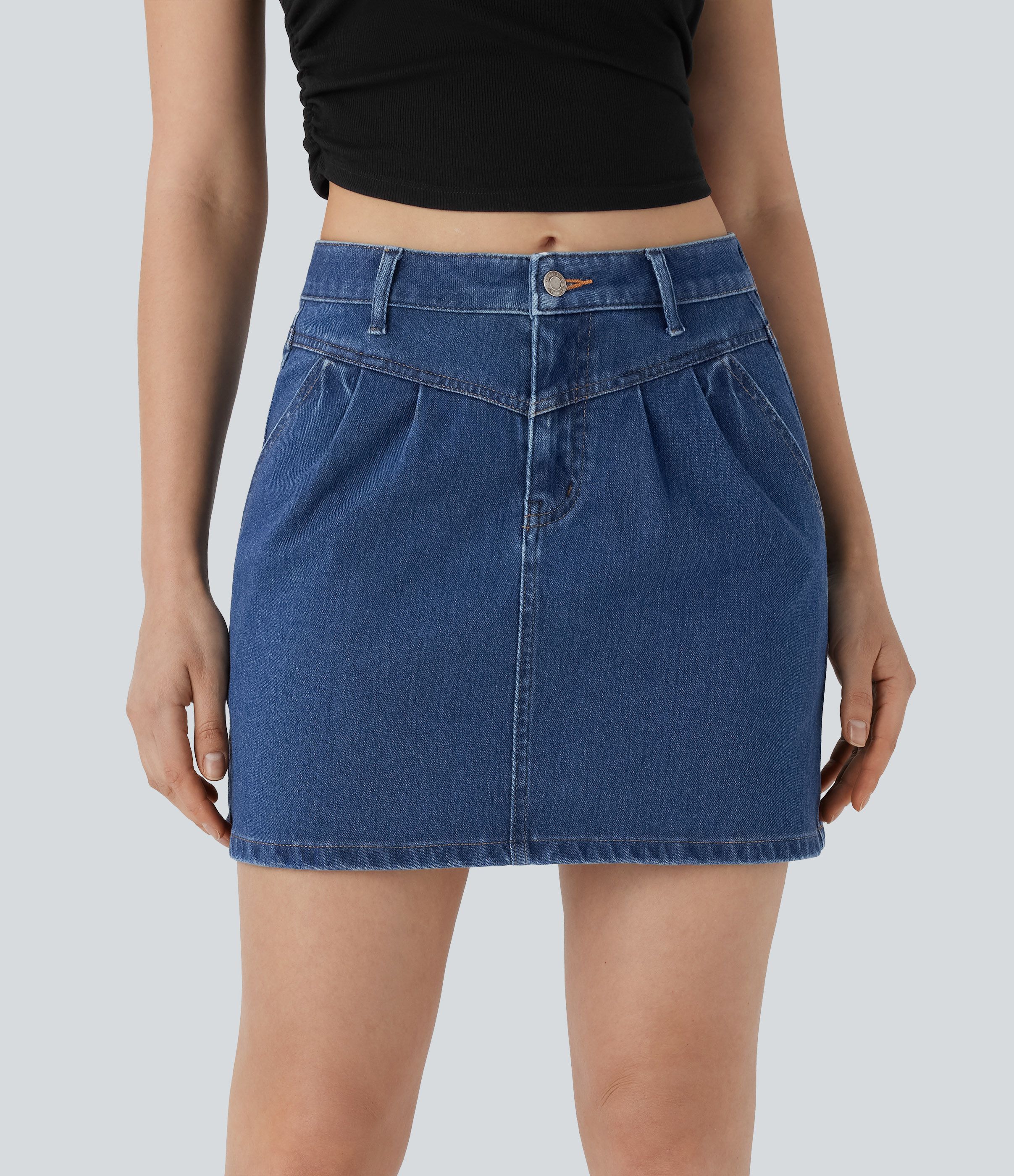 Halara Flex™ Mid Rise Zipper A Line Denim Mini Casual Skirt with Pockets