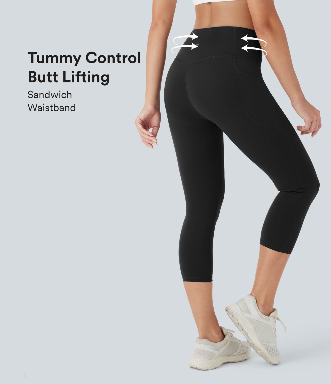 Halara UltraSculpt™ High Waisted Butt Lifting Tummy Control Shaping Capri Tights Women Active Scrunch Leggings with Pockets