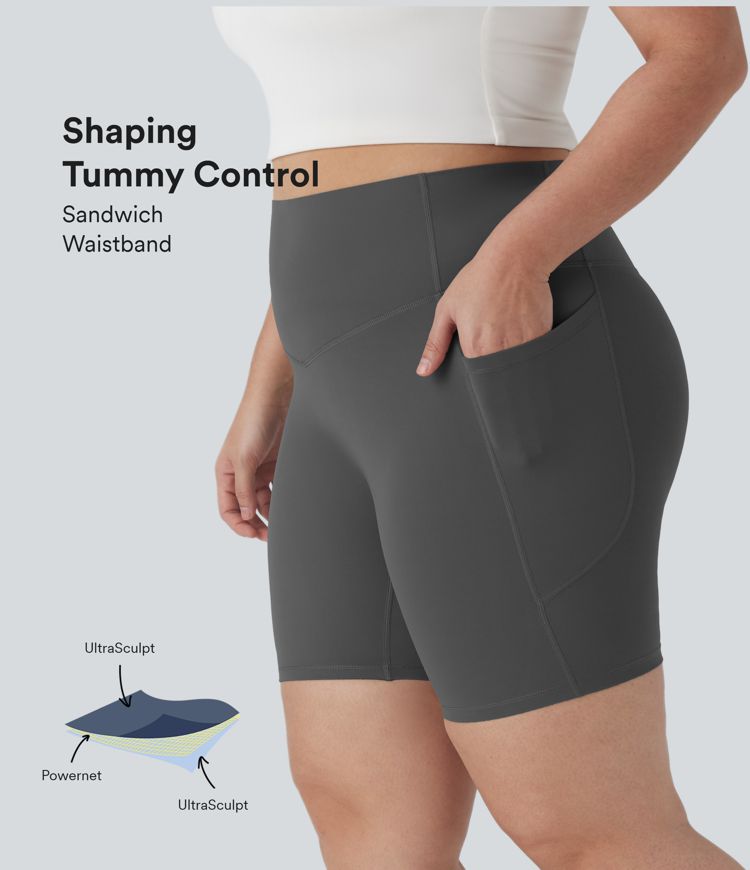 Halara UltraSculpt™ High Waisted Tummy Control Shaping Training Plus Size Biker Shorts 7'' with Pocket