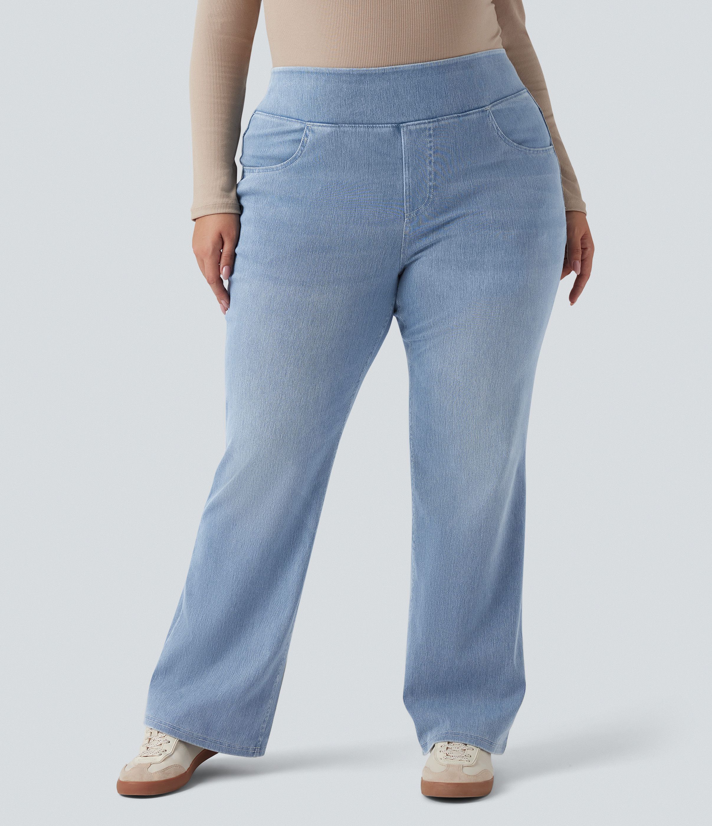 Halara Flex™ High Waisted Pockets Washed Denim Casual Bootcut Plus Size Women Straight Jeans