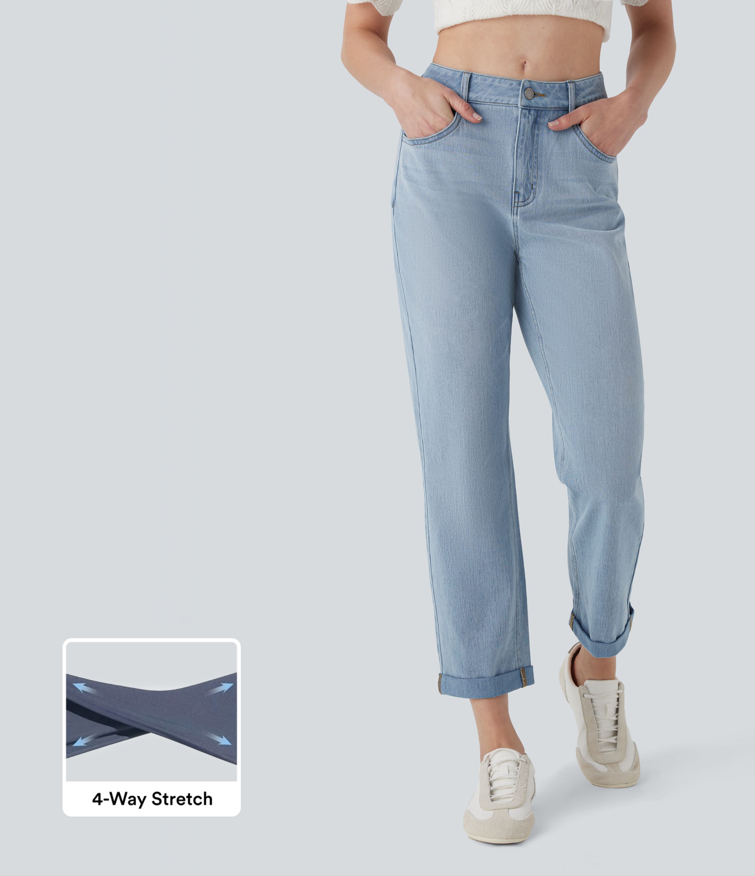 Halara Flex™ Mid Rise Straight Leg Washed Casual Jeans with Pockets