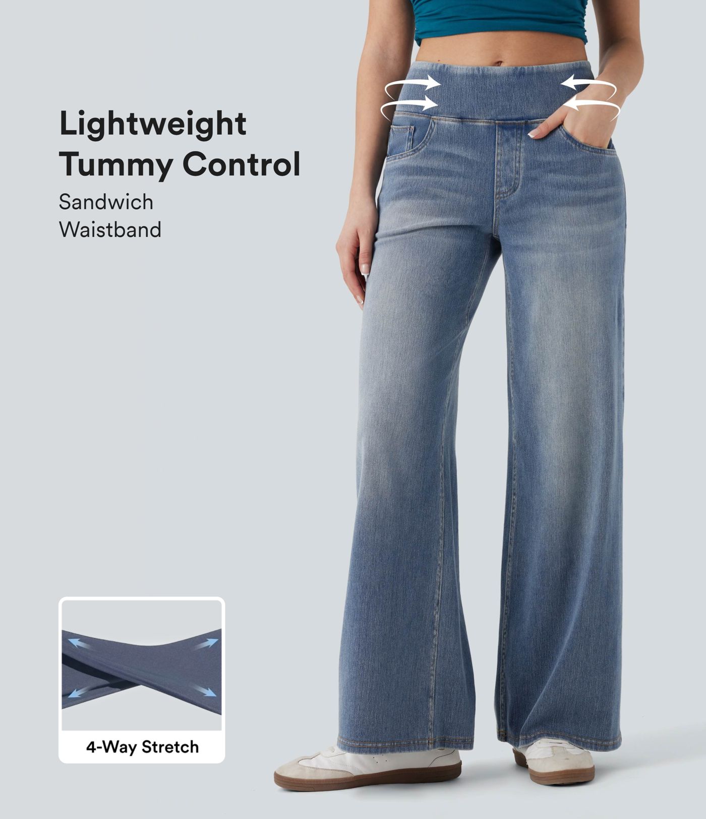 Halara Flex™ SoCinched Jeans Casuales Holgados de Talle Medio con Control de Abdomen y Bolsillos