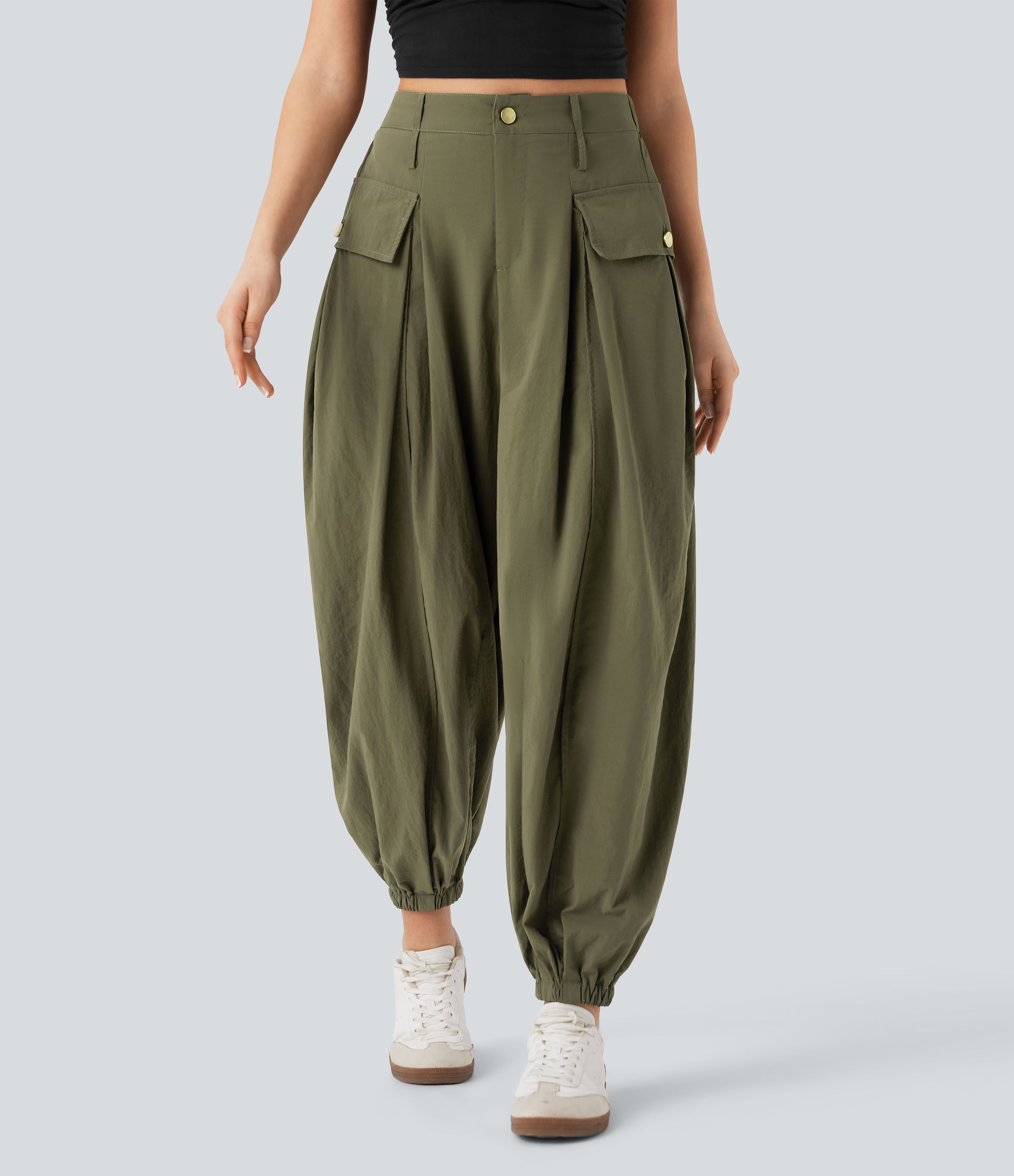 High Waisted Flap Pockets Casual Cargo Joggers