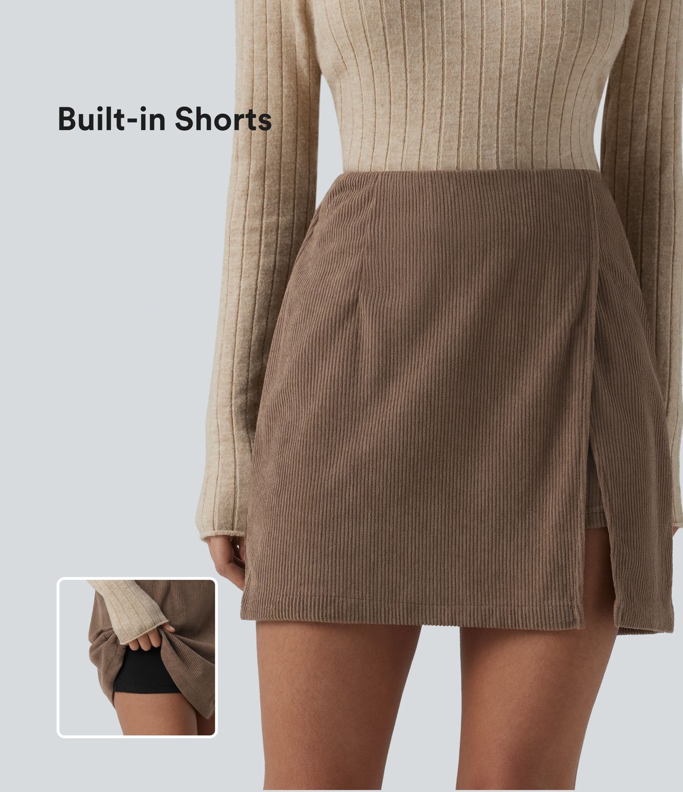 High Waisted 2-in-1 A Line Corduroy Women Casual Mini Skirt