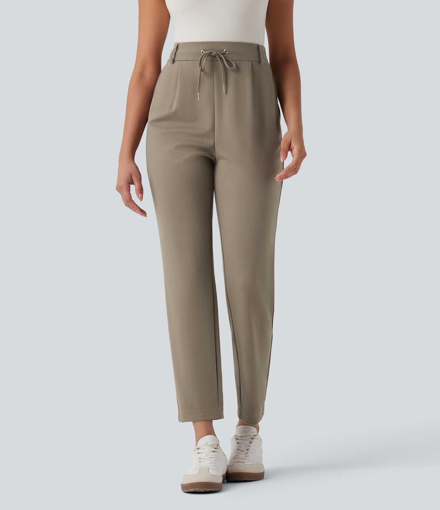 SculptKnit High Waisted Drawstring Tapered Casual Pants with Pockets
